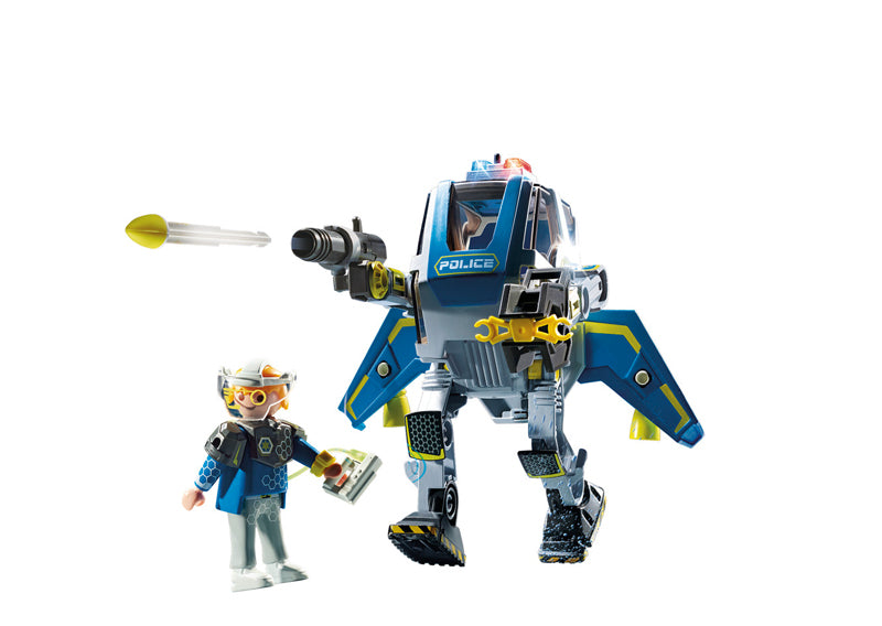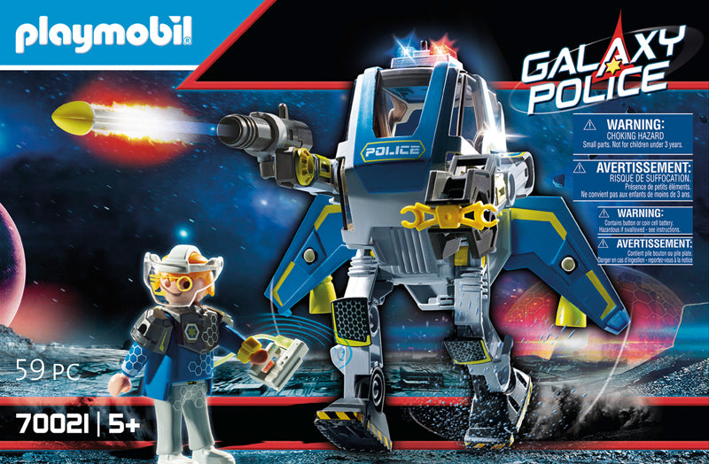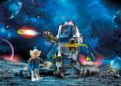 Para batalhas difíceis, o Playmobil 70021 Galaxy Police Robot está à disposição para ajudar.