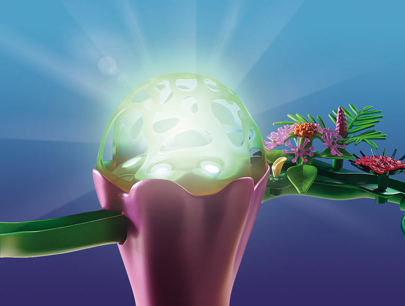 O conjunto de jogos inclui 5 figuras Playmobil e muitos acessórios mágicos. As barbatanas das figuras podem se mover para cima e para baixo.