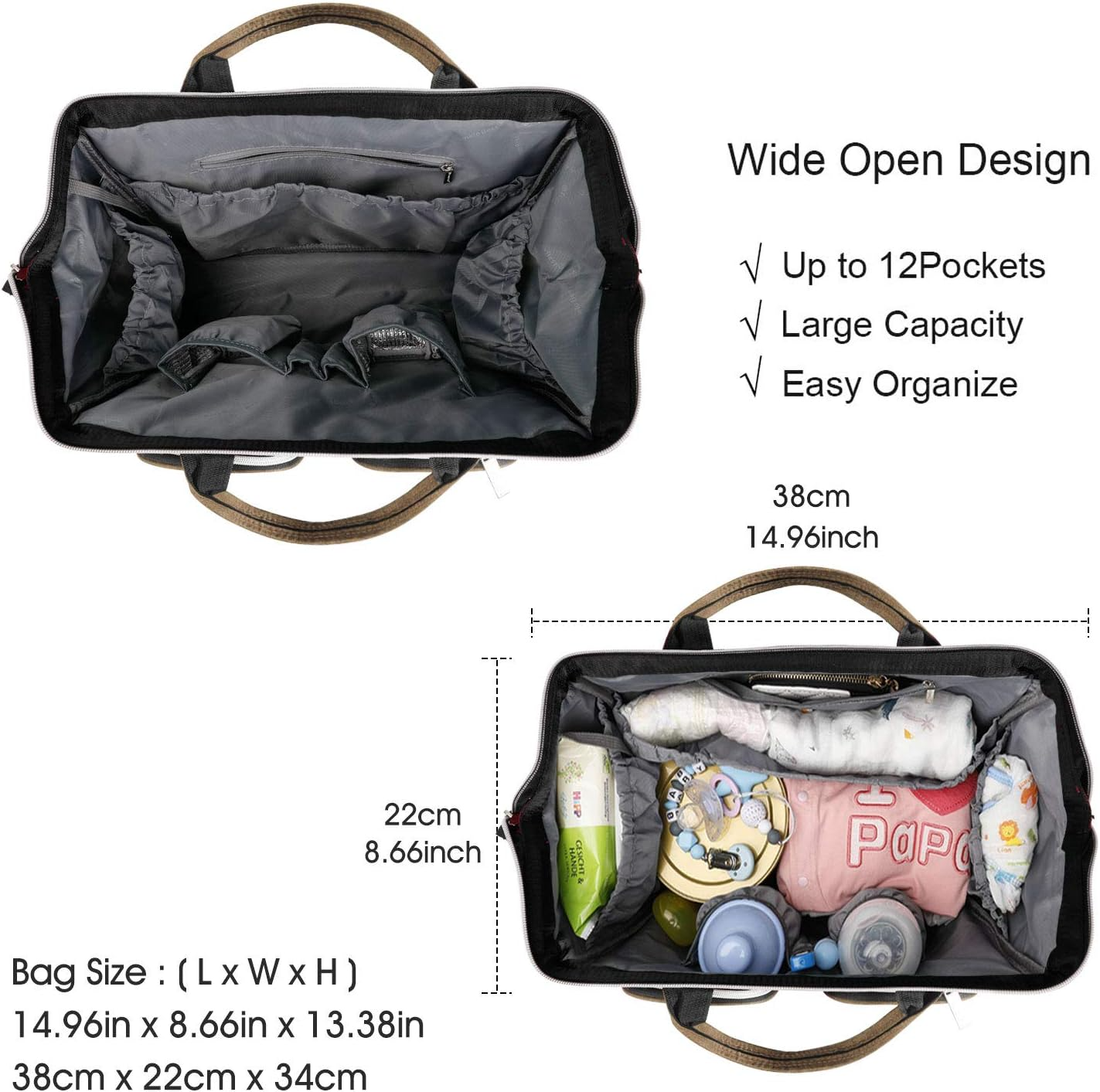 Design unissex elegante para pais e mães – o fardo de carregar fraldas e outras coisas não recai apenas sobre as mães, mas também sobre os pais, porque o bebê vem com muitas coisas para levar, esta bolsa de troca de design unissex é perfeita para pais e mães, não é muito feminino ou masculino e você pode carregá-lo para uso diário.