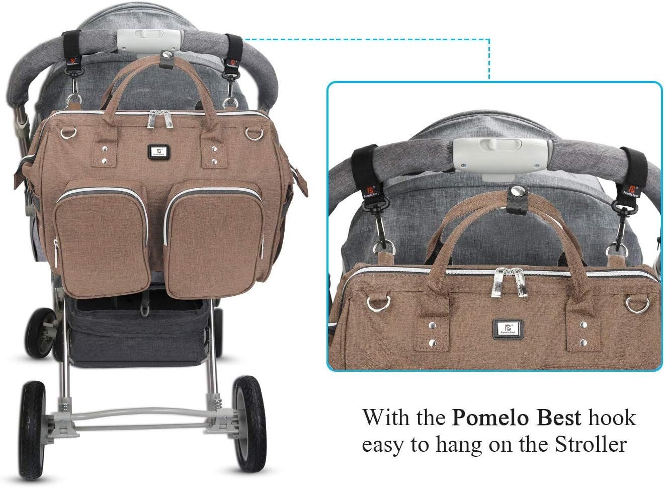 Pomelo Melhor bolsa para troca de bebê com clipes para carrinho de bebê e trocador