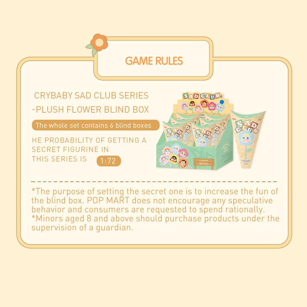 POP MART CRYBABY Sad Club Series - Flor de Pelúcia 6 Caixas Articuladas Personagem Design Premium presentes para mulheres Brinquedo Colecionável Favorito dos Fãs Figura de Ação de Brinquedo de Arte