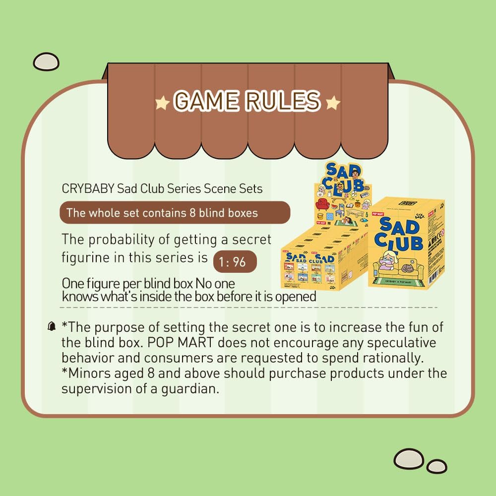 POP MART CRYBABY Sad Club Series Scene Sets Conjunto completo (8 caixas) 2,5 polegadas Articulado Personagem Design Premium presentes para mulheres Caixa surpresa favorita dos fãs Brinquedo colecionável Arte Brinquedo Figura de ação
