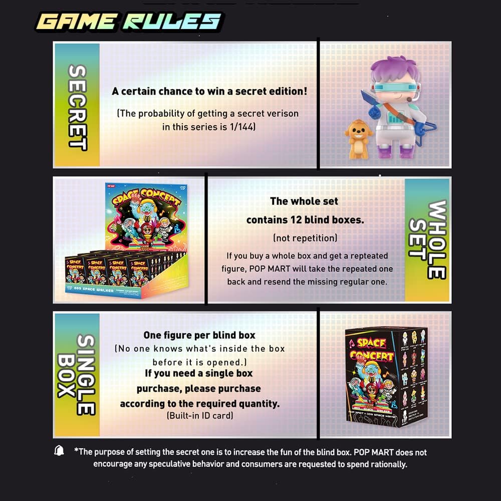 - 【Caixa Surpresa】Cada caixa surpresa está organizada de forma aleatória. Cada série tem uma edição oculta. A hipótese de obter uma edição oculta é de cerca de 1 em 144 caixas surpresa, por isso, se a conseguir, terá muita sorte! São tão raras!