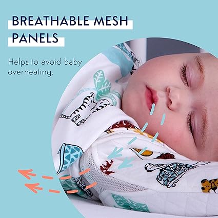 - Respirável - Este cobertor vestível para bebês tem painéis de malha respiráveis para estimular a ventilação e ajudar a impedir que seu bebê superaqueça na primavera e no verão. O enchimento hipoalergênico e sustentável mantém seu bebê confortável durante o outono e o inverno.