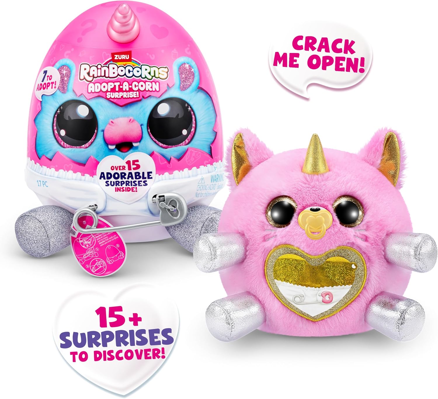 - Mais de 15 surpresas internas: Rainbocorns Adopt-A-Corn Surprise vem com mais de 15 surpresas adoráveis