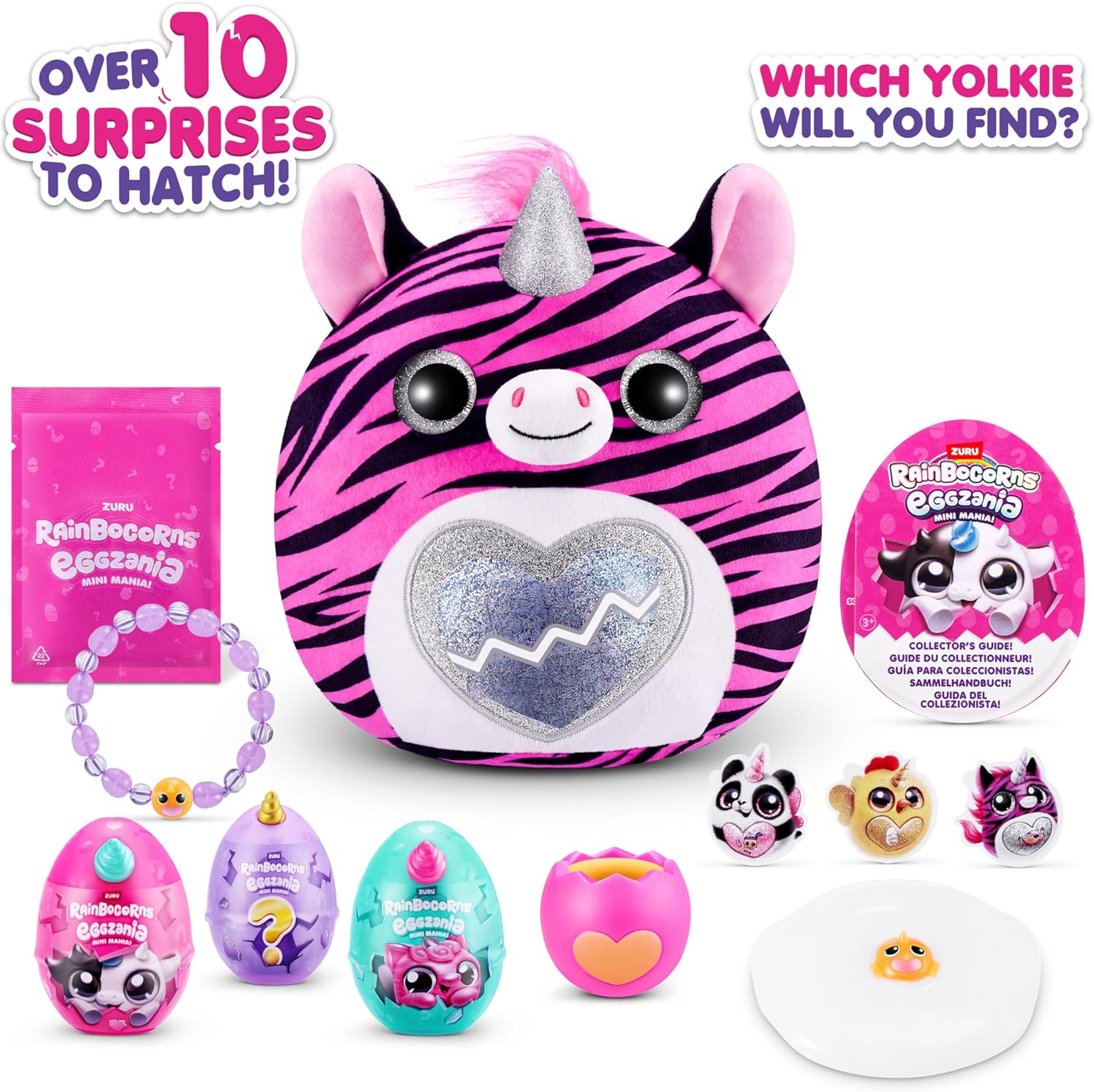 Rainbocorns ZURU Eggzania Mini Mania, Zebra, da ZURU Plush Surprise Unboxing com Animal Soft Toy, Ideia para Meninas com Brincadeiras Imaginárias (Zebra)