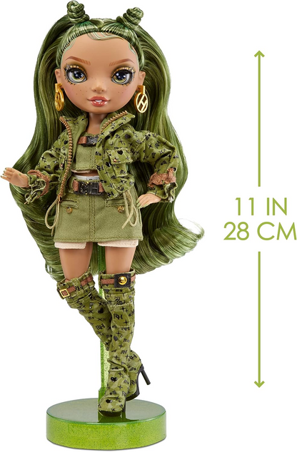 Rainbow High Boneca da moda - OLIVIA WOODS - Boneca verde camuflada - roupa da moda e mais de 10 acessórios coloridos para brincar - para colecionadores e crianças de 4 a 12 anos