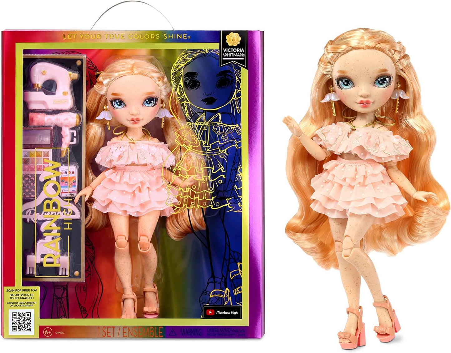 Rainbow High Boneca da moda - VICTORIA WHITMAN - Boneca rosa claro com sardas - Roupas da moda e mais de 10 acessórios coloridos para brincar - Para colecionadores e crianças de 4 a 12 anos