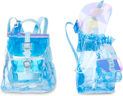 INCLUI - Uma boneca de moda glamourosa com uma roupa completa, um par de sapatos, um par de meias e vários acessórios, incluindo uma gravata de cabelo, um pente de boneca e uma mochila de vinil macia que abre e fecha