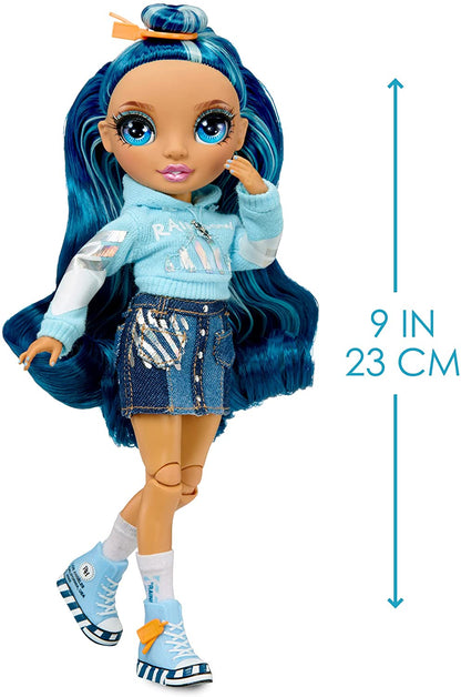 THROWBACK TO JUNIOR HIGH - Deixe suas cores brilharem com a coleção Rainbow High Jr. High. Conheça Skyler Bradshaw quando ela era mais jovem com esta boneca fashion de 23 cm com lindos traços, roupas detalhadas e lindos cabelos azuis