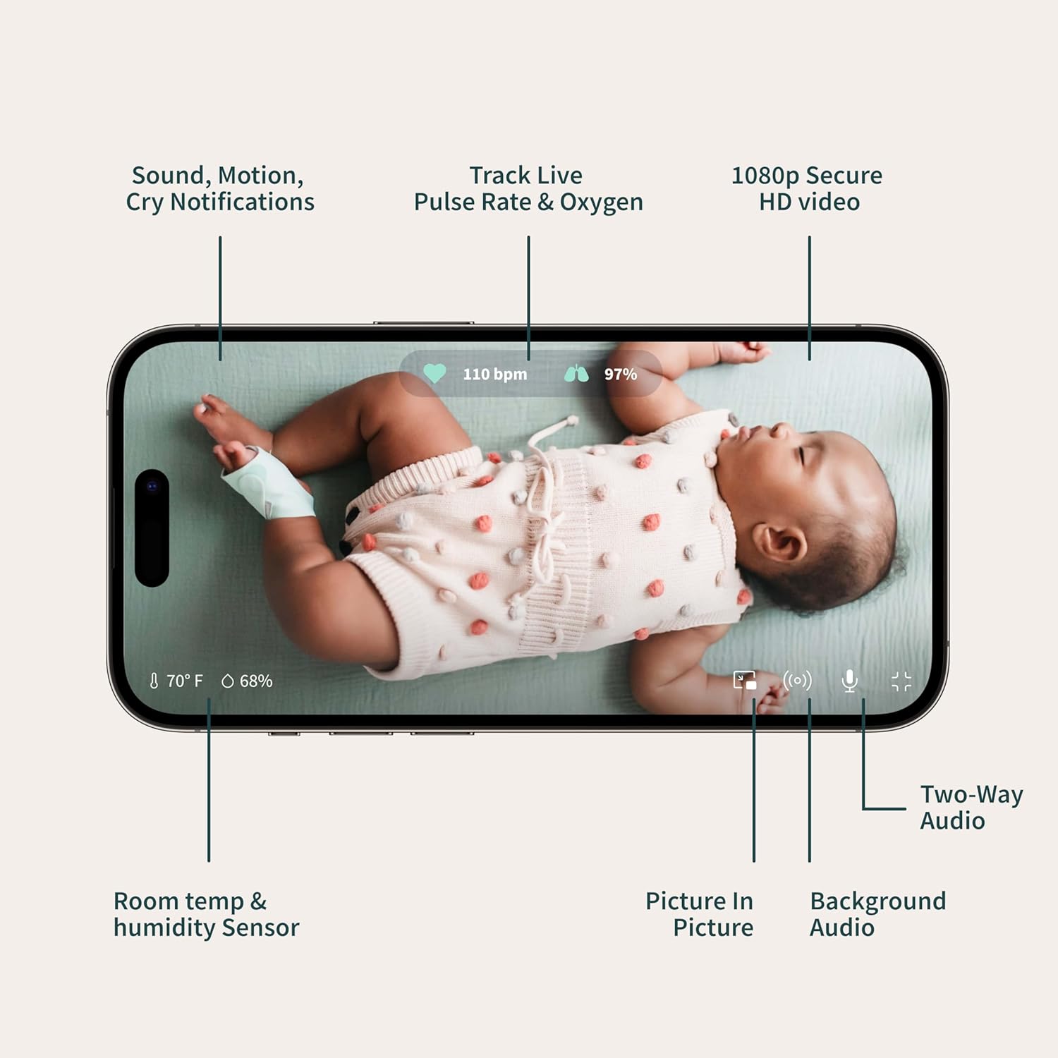 - Visualize e monitore a frequência cardíaca (pulsação), oxigênio, despertares e tendências do sono do seu bebê com precisão de nível médico e em tempo real por meio do aplicativo Owlet Dream.