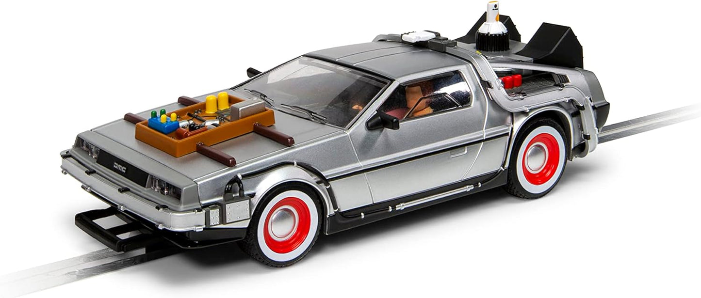 Scalextric De volta ao futuro vs Knight Rider Escala 1:32 Slot Racing, carro Time Machine C4249, marrom