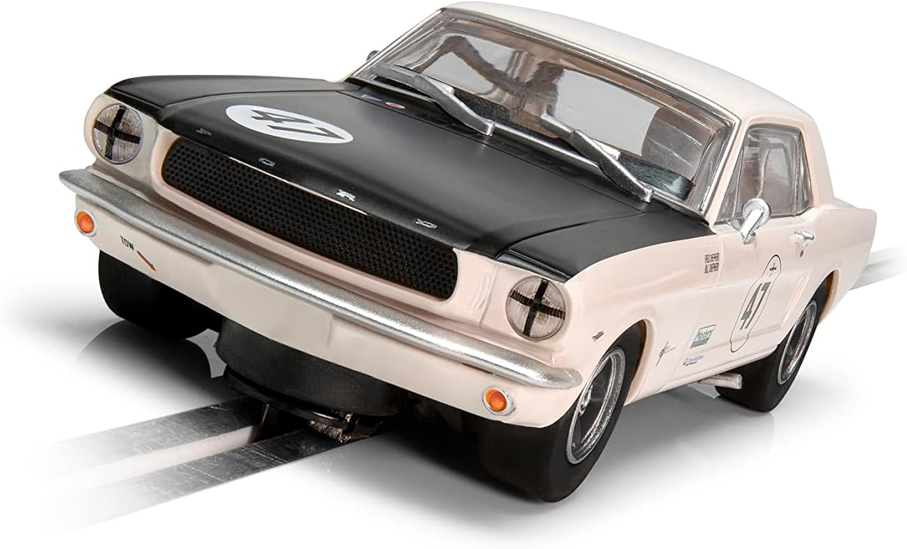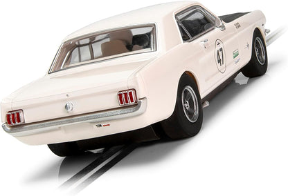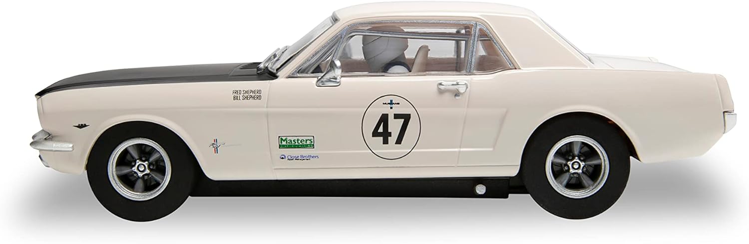 Scalextric Ford Mustang - Bill e Fred Shepherd - Renascimento de Goodwood. Turismo Clássico. Muscle cars, branco/preto (C4353)