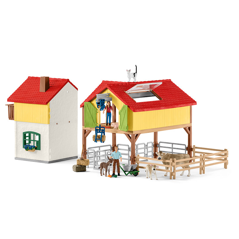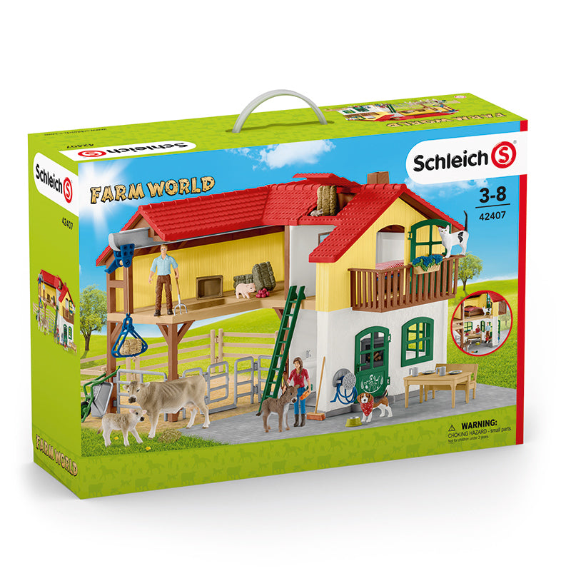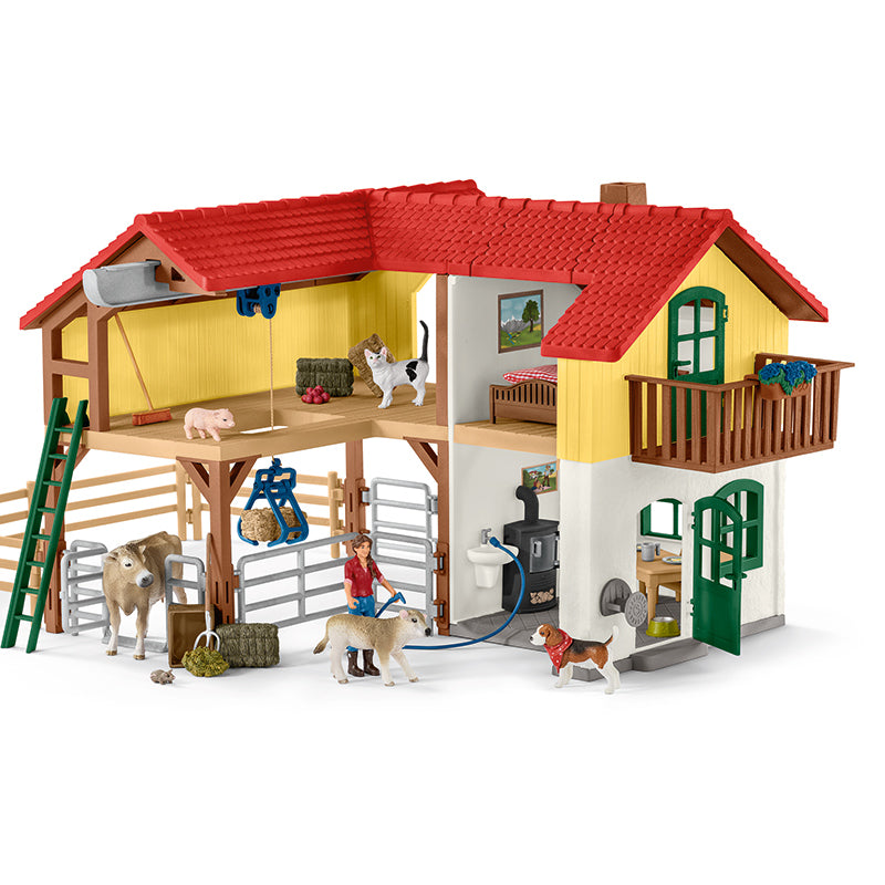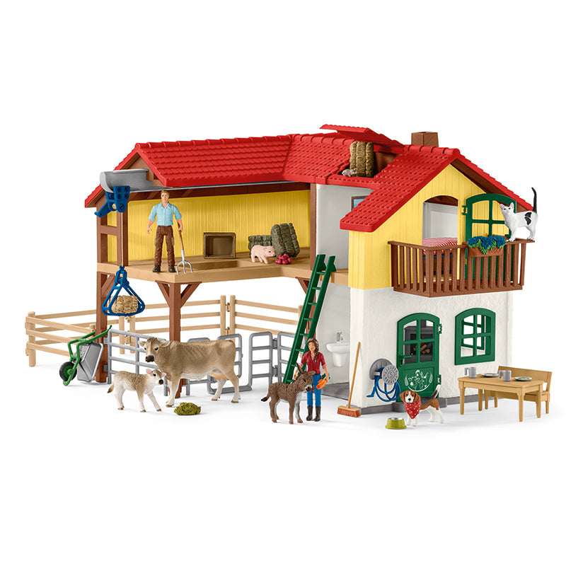 A grande fazenda de Schleich é a peça central do Schleich FARM WORLD. Os fazendeiros Paul e Laura moram aqui. Ambos cuidam amorosamente dos animais da fazenda. O conjunto inclui diversos acessórios e funções para horas de diversão.