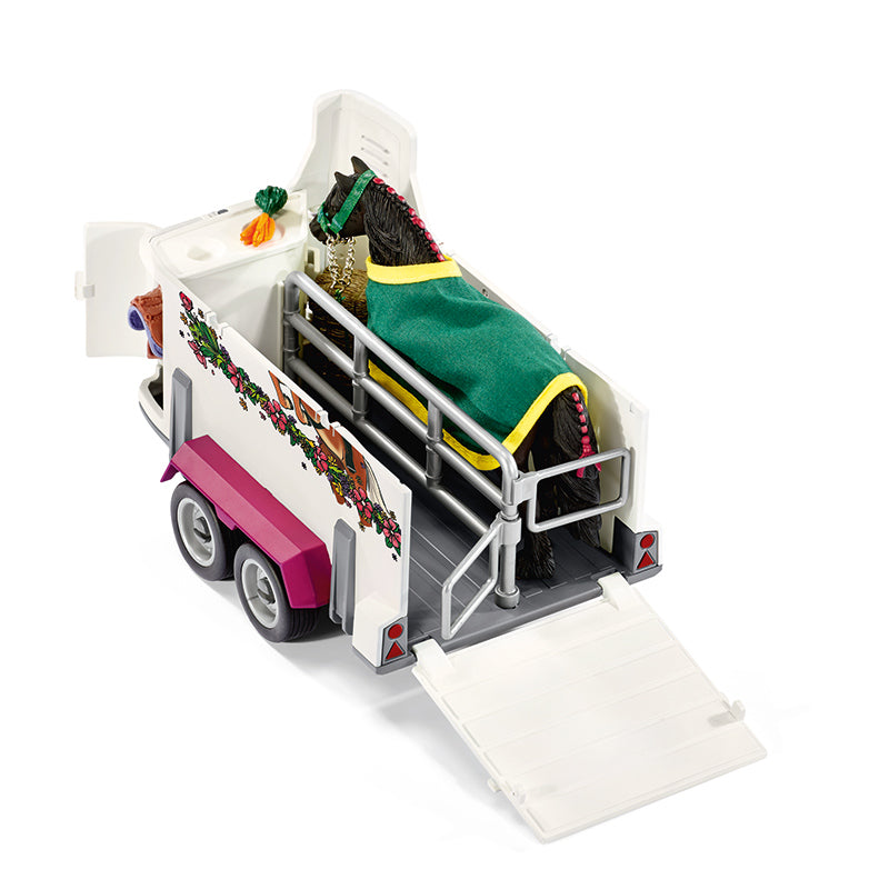 Bella tem um temperamento calmo e pacífico, mas ainda assim a deixa muito agitada. Então Betty entra na caminhonete e eles lentamente saem dos estábulos. Durante a viagem, a égua olha em volta com curiosidade. Eles logo estarão na nova tenda - e então, primeiro as coisas primeiro, Bella poderá sair para o paddock.