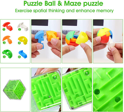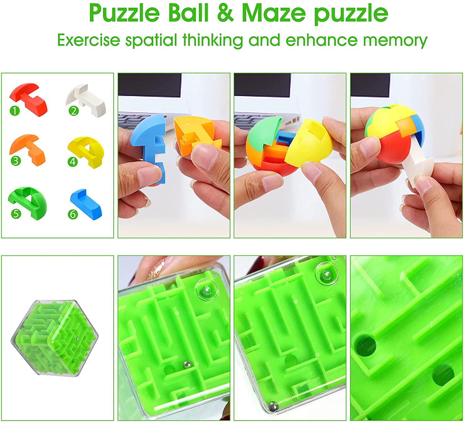 💖 【Brinquedos de aprendizagem abundantes e engraçados】 É uma maneira divertida de manter o cérebro focado e as mãos ocupadas. Vire, aperte, empurre, gire, cutuque e estique, as crianças participam de atividades sensoriais, podem efetivamente exercitar a sensibilidade, cultivar a criatividade e o senso de concentração, melhorar a memória infantil jogando como o cubo mágico, bola de quebra-cabeça ou quebra-cabeça labirinto.