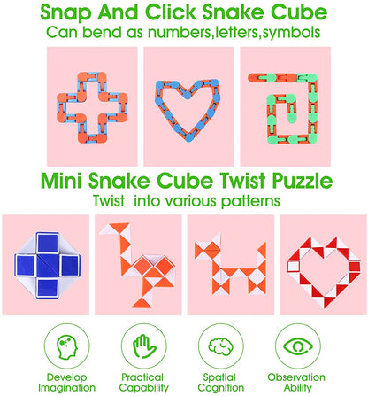 💖 【32 PCS Sensory Toys】 Conjunto de brinquedos sensoriais inclui 4 cordas elásticas, 2Puzzle ball, 1 labirinto puzzle, 2 snap and click snake, 1 dedo giroscópio, 2 twist puzzle brinquedos e assim por diante. Cores brilhantes e variedades ricas, efetivamente atraem a atenção das crianças , Promova a estimulação motora. Também vem com caixa de embalagem requintada para armazenar facilmente os brinquedos.