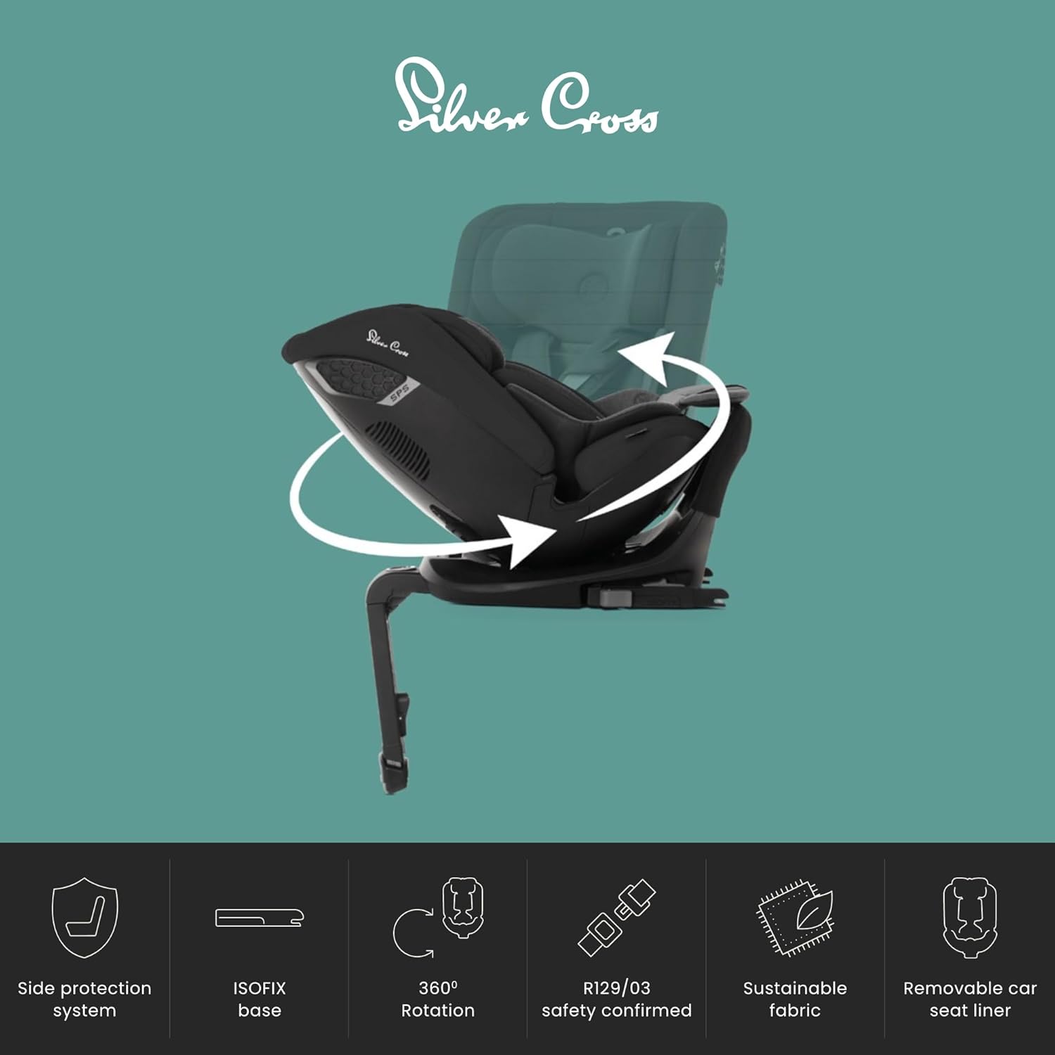 Silver Cross Cadeira auto Motion All Size 2 360 - Recém-nascido a 12 anos - Cadeira auto Isofix - Cinto de segurança de 5 pontos - Rotação de 360° - Espaçosa