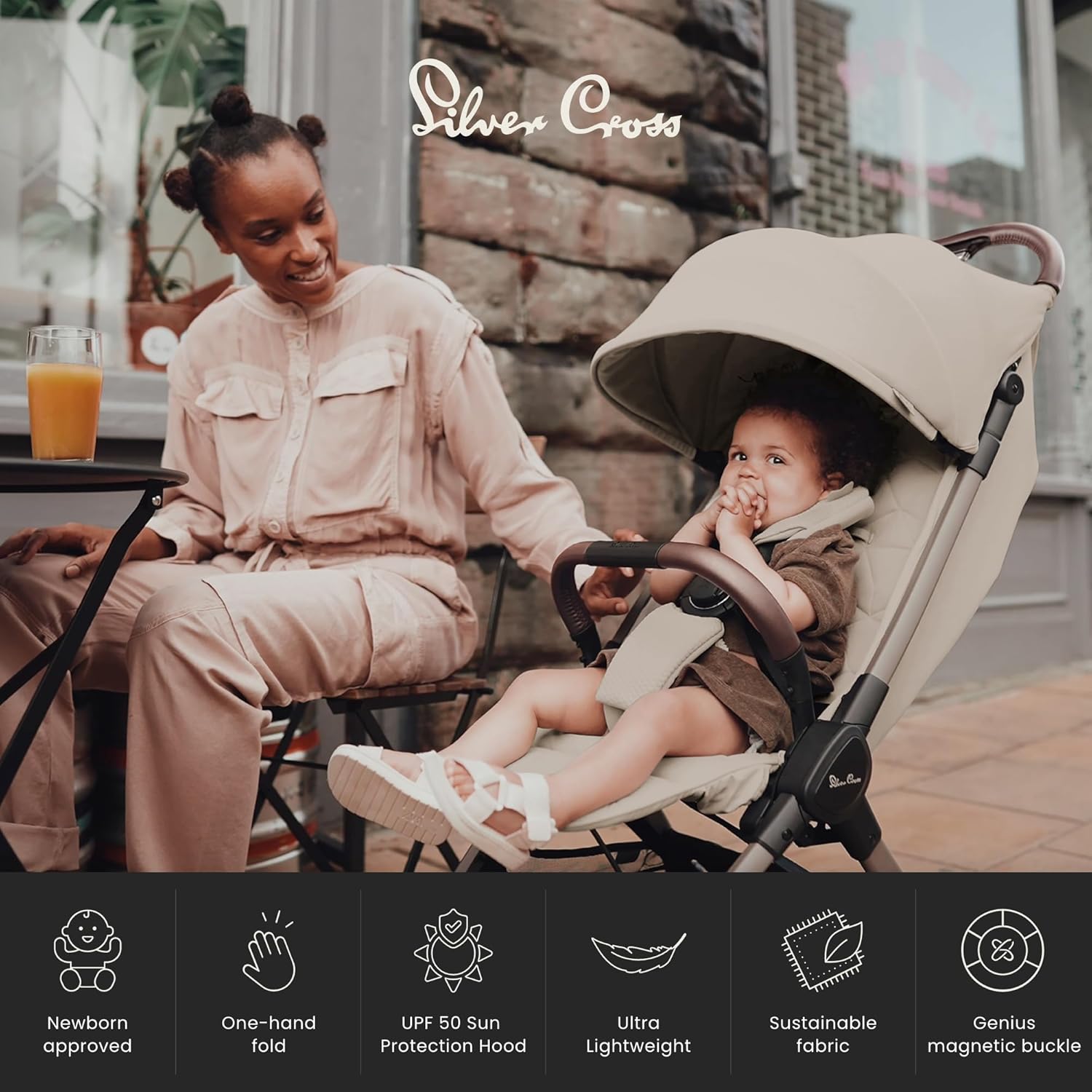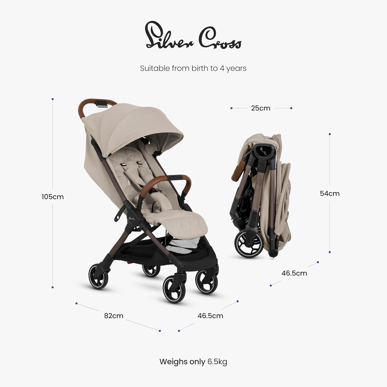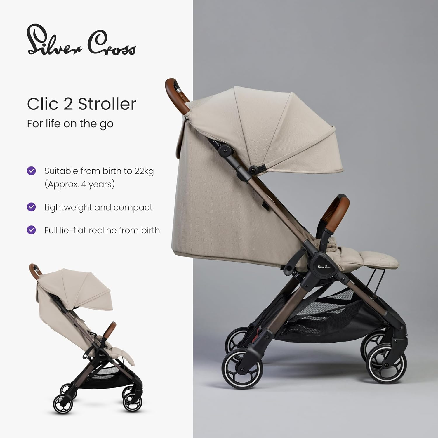 Silver Cross - Carrinho de bebê compacto Clic 2 e bolsa de viagem - Carrinho de viagem para a vida em movimento - Dobrável e leve - Adequado do nascimento aos 4 anos - Latte