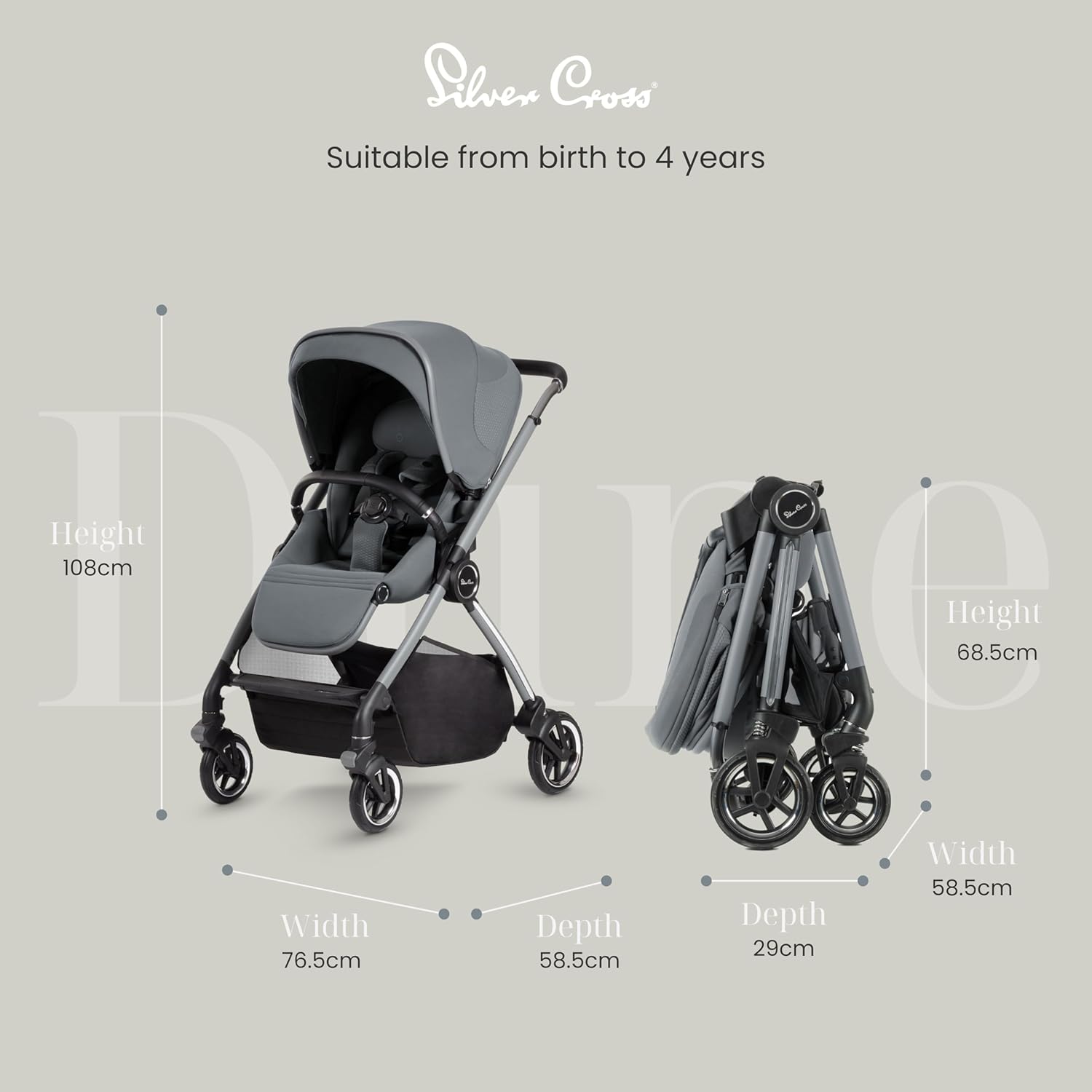 Silver Cross | Carrinho Duna | Carrinho de viagem | Carrinho dobrável e leve | Sistema de viagem compacto | Recém-nascidos - 4 anos | Geleira
