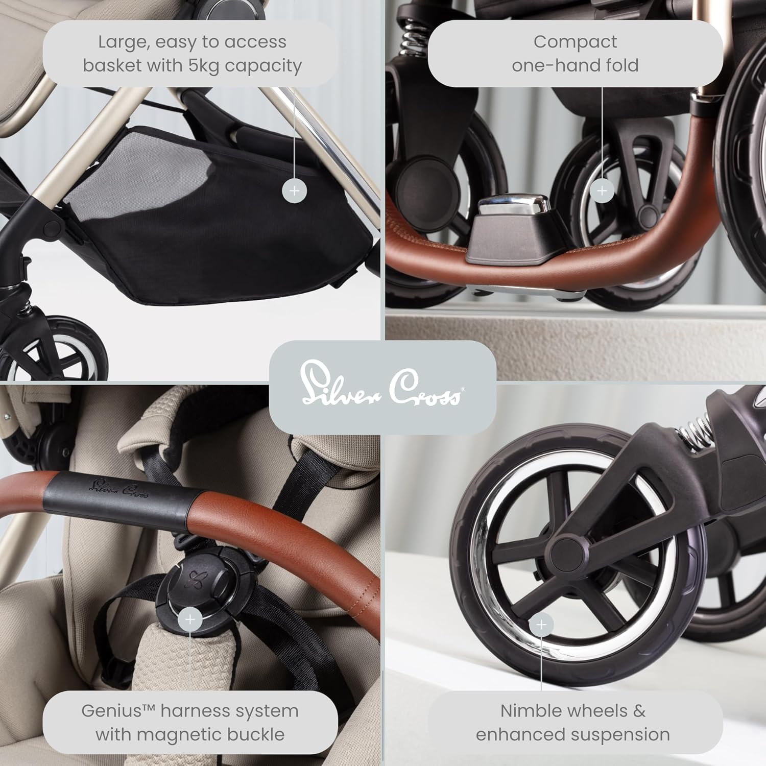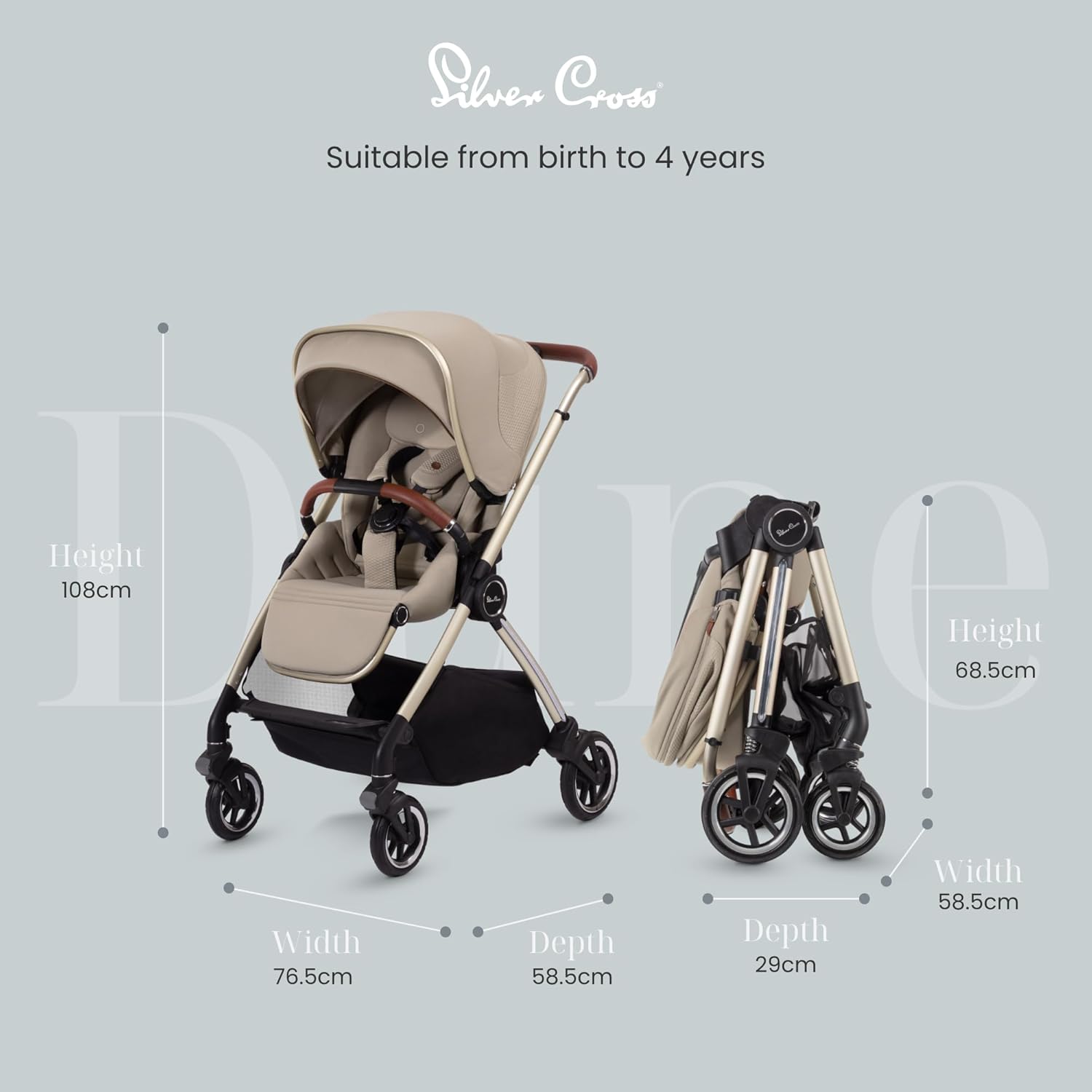 Silver Cross | Carrinho Duna | Carrinho de viagem | Carrinho dobrável e leve | Sistema de viagem compacto | Recém-nascidos - 4 anos | Pedra