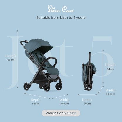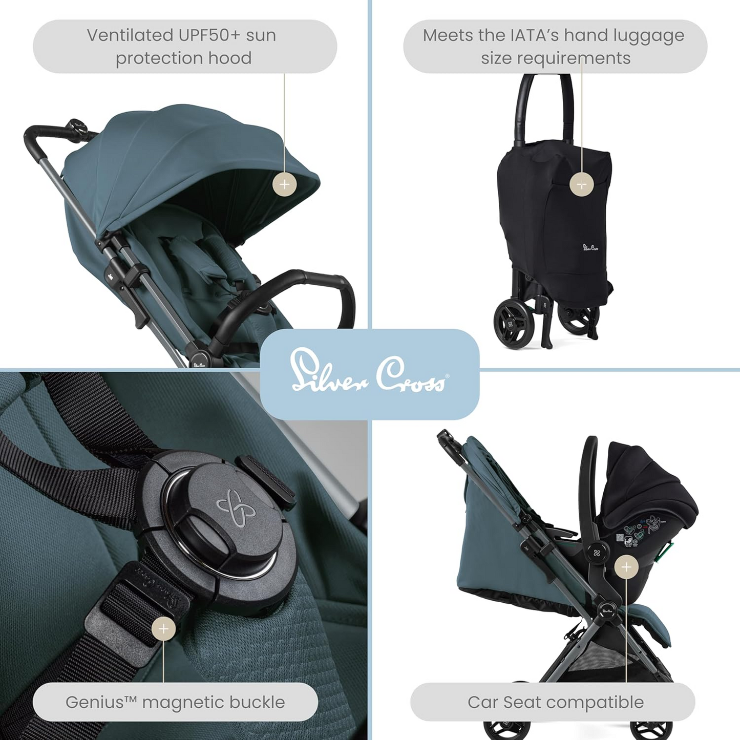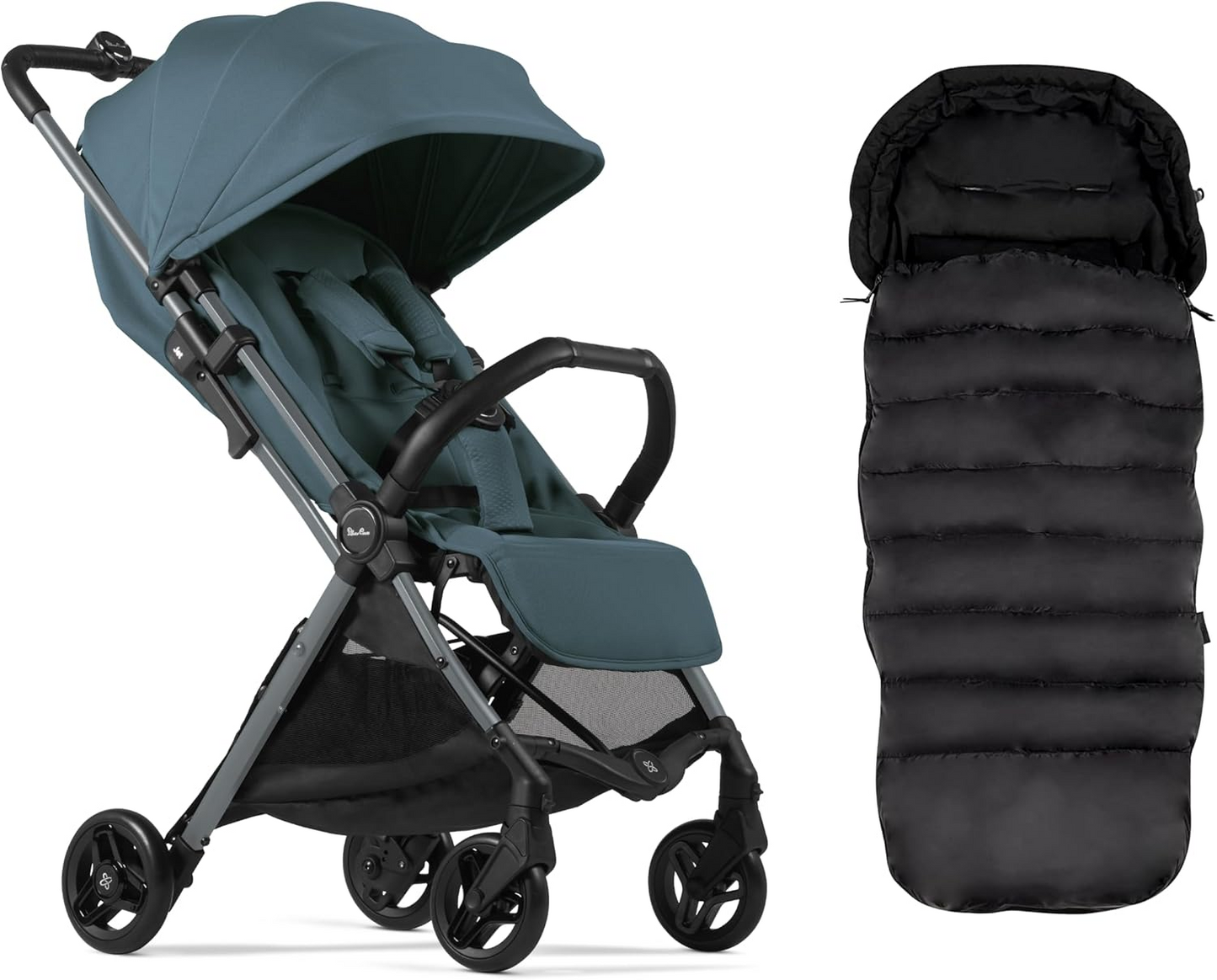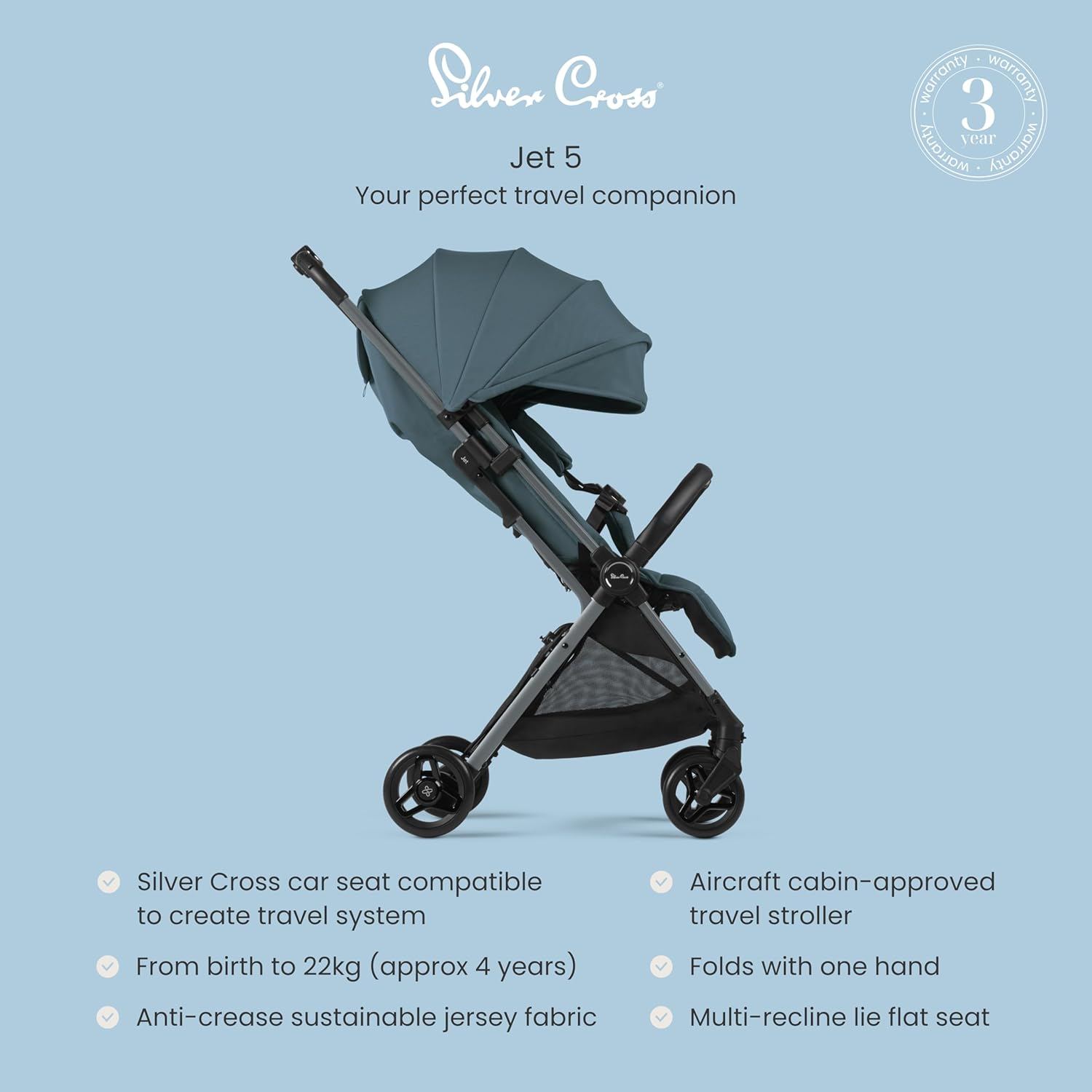 Silver Cross - Jet 5 Compact Carrinho de passeio Saco para os pés - Carrinho de viagem - Carrinho de passeio/sistema de viagem dobrável e leve - Tamanho da cabine - Compatível com cadeira auto - Recém-nascido a 4 anos - Mineral