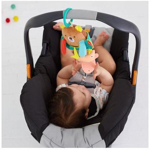 Com este lindo brinquedo de dentição para bebês, há muita agitação! Basta puxar o copo de peixe para um efeito de jitter divertido. Fácil para pequenas mãos para segurar, o brinquedo possui um loop embutido para que você possa anexá-lo a qualquer lugar para diversão on-the-go!
