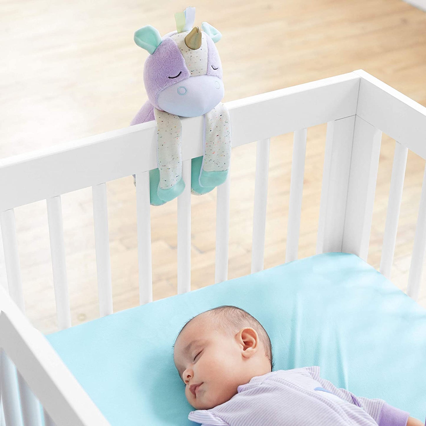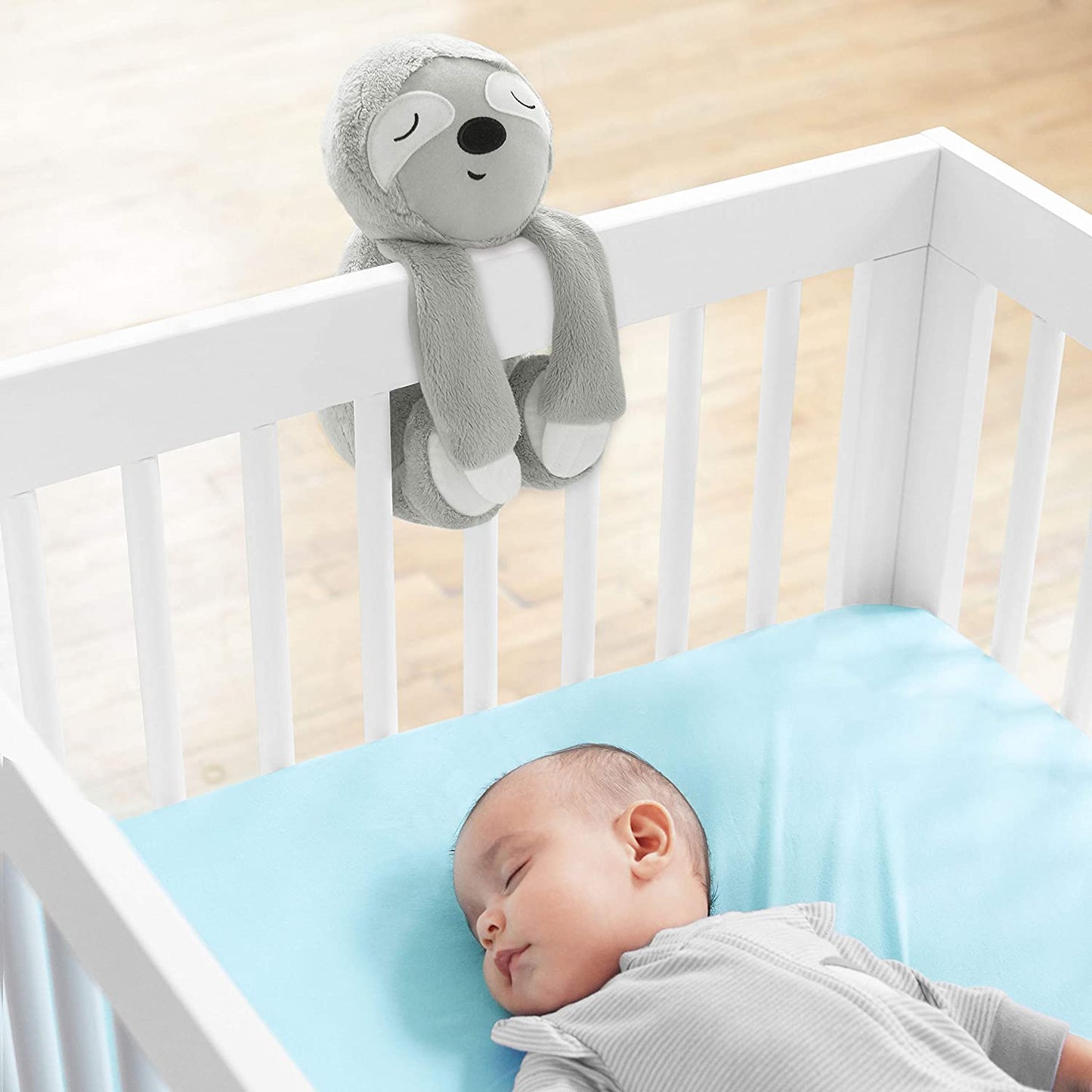 Fixa-se facilmente no berço com fecho de velcro e torna-se um amigo que pode ser abraçado por crianças pequenas