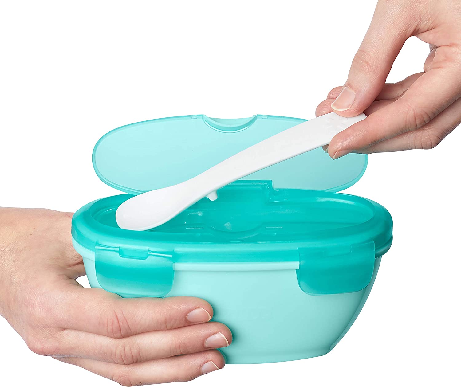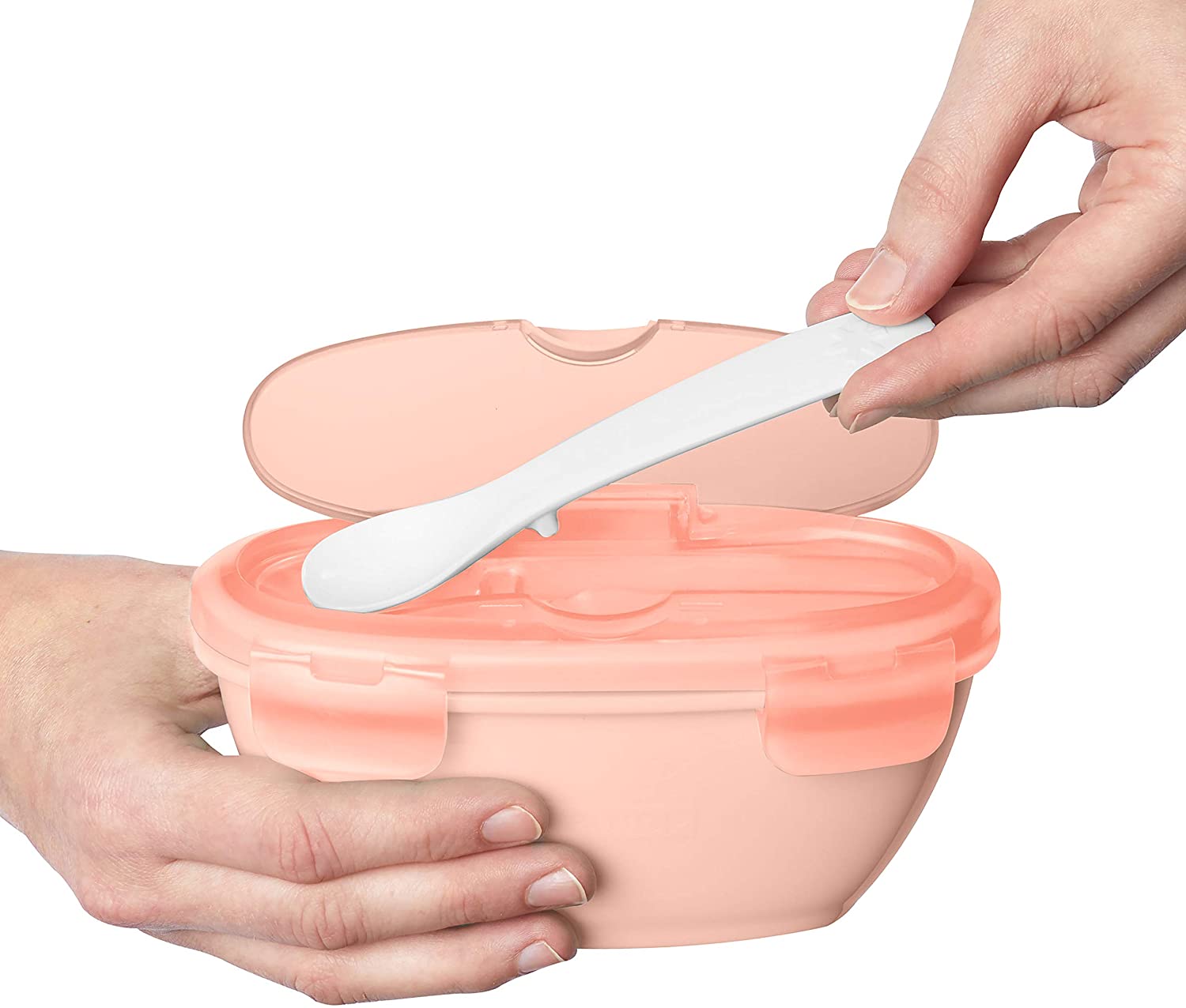 Adequado a partir de 3 meses, inclui tigela de viagem com tampa resistente a derramamento e colher inclui tigela de viagem com tampa resistente a derramamento e colher