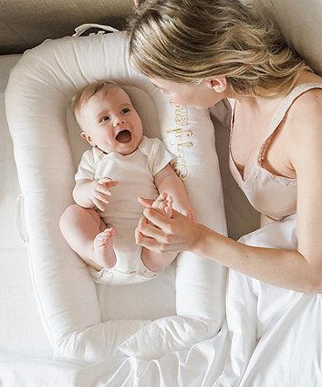 O Sleepyhead Deluxe + oferece um local seguro e confortável que permite que o seu bebê durma em um ambiente supervisionado, descanse, relaxe, relaxe, faça carinho, durma e troque a fralda.