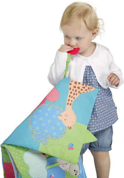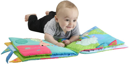 Grande sensação e livro explorador de 6 páginas feito de tecido para estimular todos os sentidos da criança