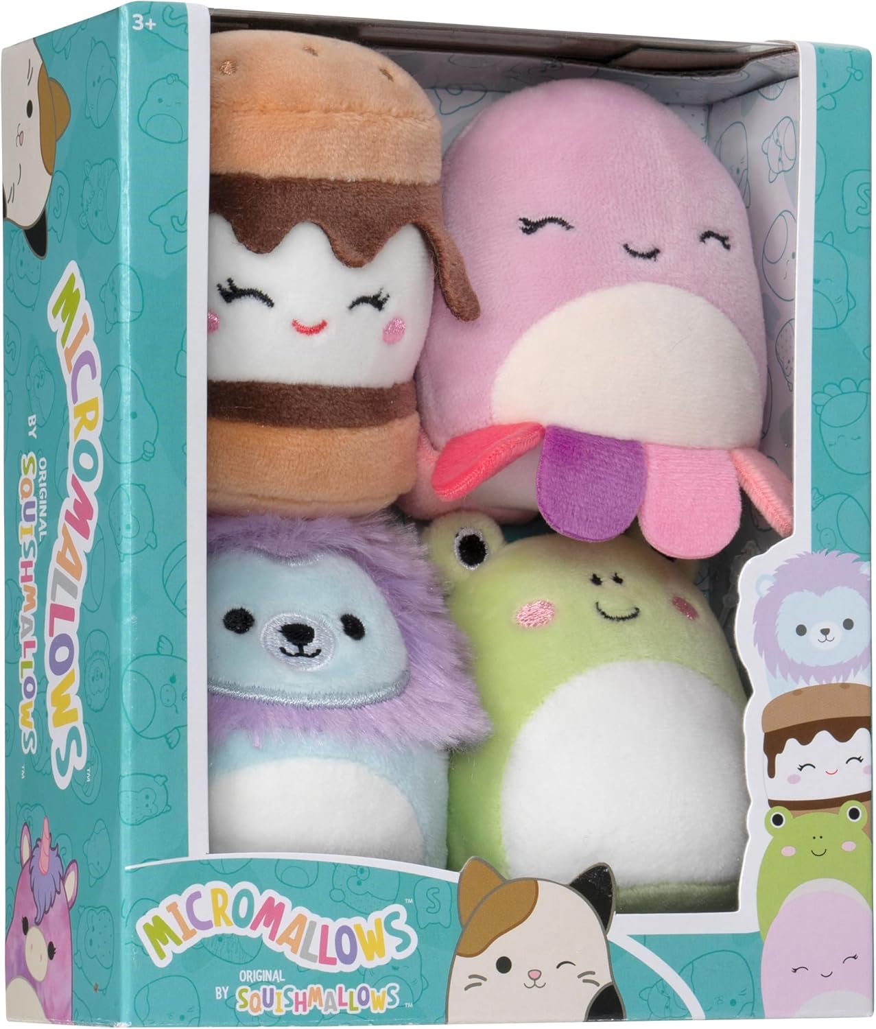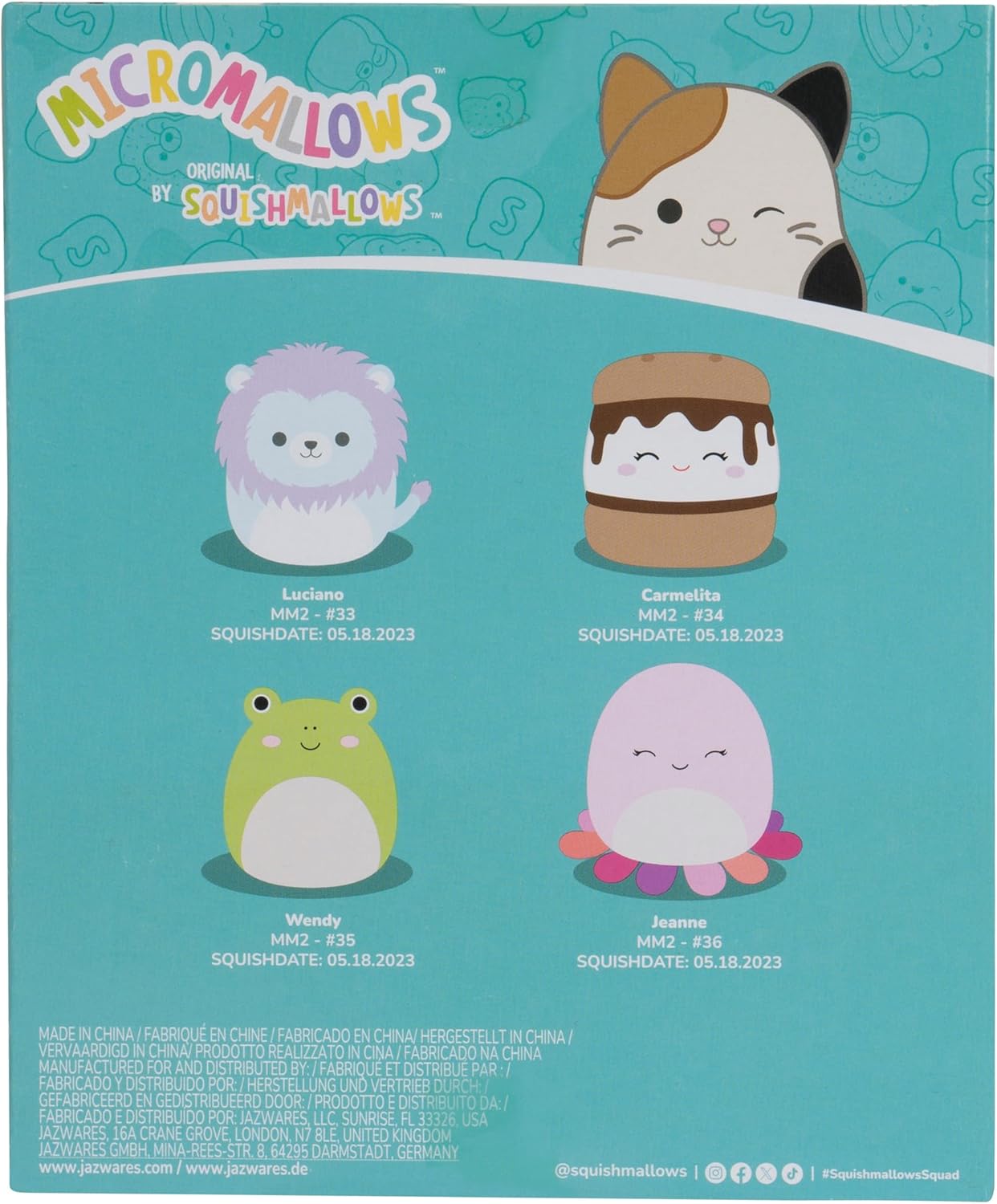 Squishmallows Micromallows Original 4-Pack - Carmelita S'mores, Jeanne Octopus, Luciano Lion, Wendy Frog