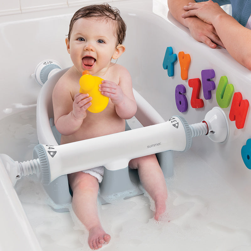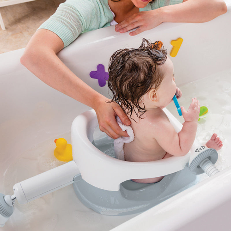 O premiado My Bath Seat oferece uma ajuda aos pais na hora do banho e é perfeito para crianças cada vez mais móveis em transição para uma banheira adulta. Este assento de suporte único é projetado para ser um par extra de mãos na hora do banho, quando o pequeno pacote ensaboado começa a explorar sua independência. Com seus três braços robustos para 360 ° de apoio, encosto alto e estrutura espaçosa, os pais podem manter o bebê firmemente no lugar enquanto liberam ambas as mãos para esfregar e brincar. As ventosas Sure & Secure em cada um dos braços do assento criam um design estável e seguro e permite fácil instalação, remoção e armazenamento.