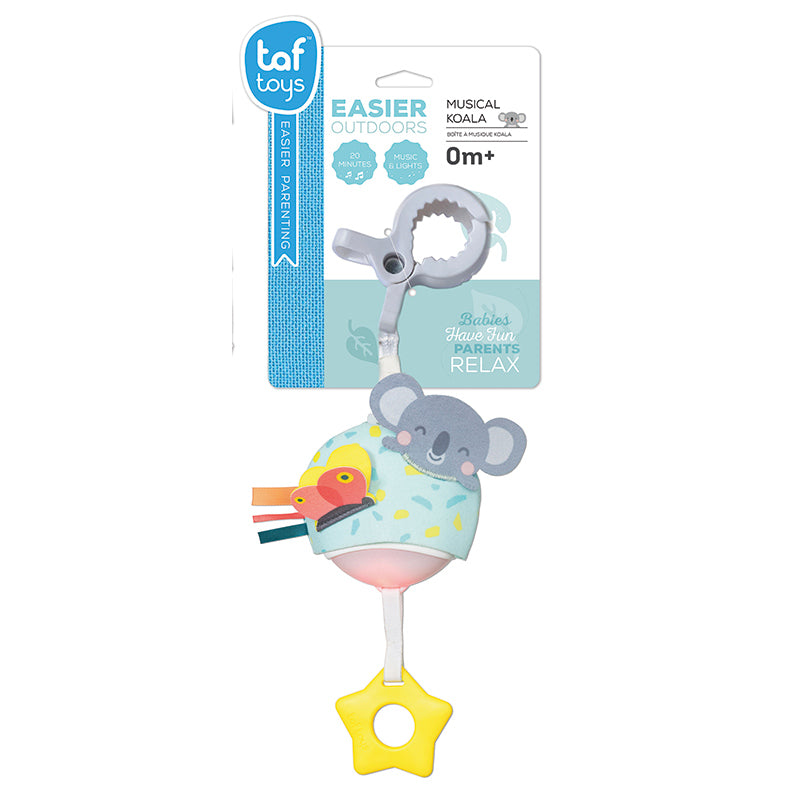 Uma unidade fantástica de música e luzes, este Koala Musical da Taf Toys é o brinquedo de viagem perfeito para quando estiver fora de casa.