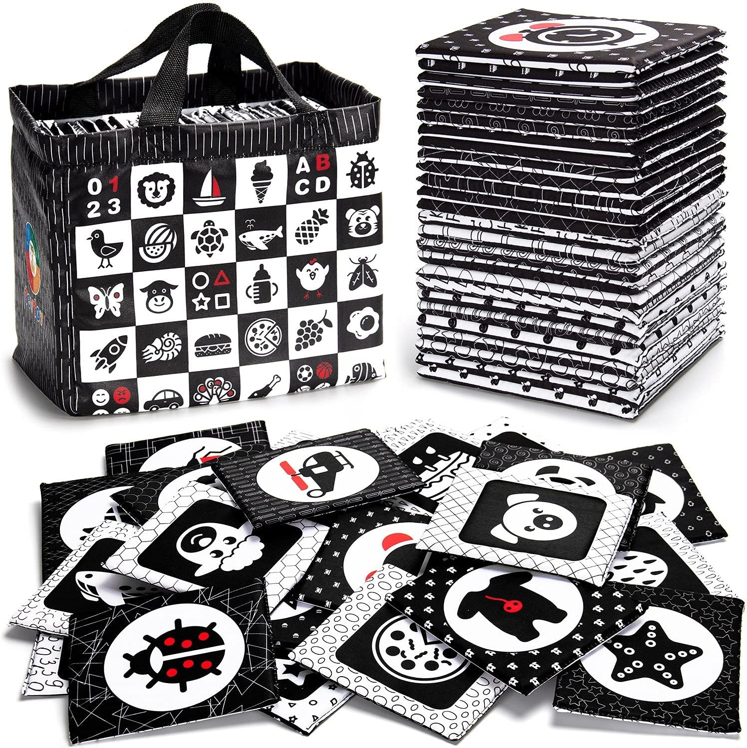 - ★ CAPTURE A ATENÇÃO DO RECÉM-NASCIDO FACILMENTE - Muitas imagens cognitivas contrastantes em preto e branco com animais, frutas, gráficos e letras estão incluídas nesses cartões de tecido. Alternativamente, mostre aos recém-nascidos estes 26 cartões de tecido macio de dupla face para focar sua atenção e promover o desenvolvimento encenado do desenvolvimento visual do seu bebê.