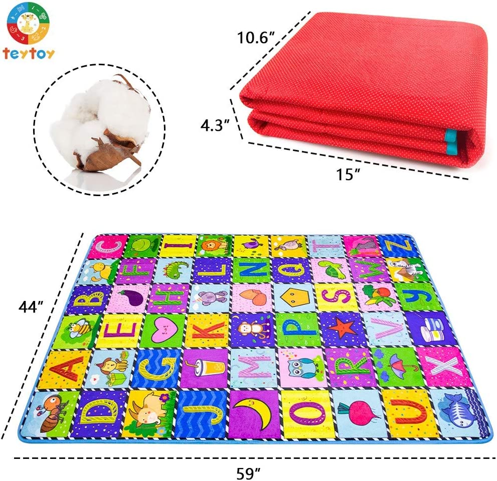 - ♫ GRANDE O SUFICIENTE PARA PROTEÇÃO PERFEITA: O tapete de bebê TEYTOY oferece uma brincadeira feliz e uma área de jogo iluminada para o seu bebê. O tamanho é de 59 x 41 polegadas, o que é suficiente para o bebê engatinhar, brincar e ficar de bruços. E também pode ser dobrado sem vinco, o que não ocupará espaço e é muito portátil para que você possa usá-lo ao ar livre ou interno livremente.