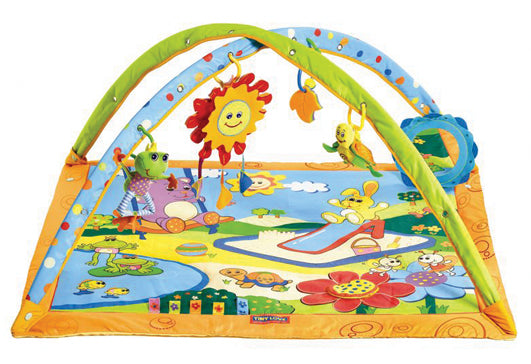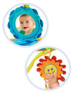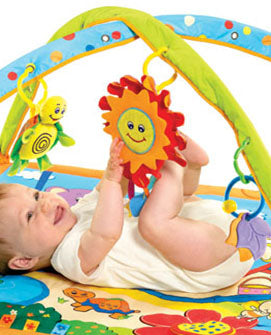 Com divertidos brinquedos pendurados, atividades de desenvolvimento abundantes no tapete, um sol musical com três músicas lúdicas e brinquedos fofos, o Gymini® Sunny Day incentivará o desenvolvimento do bebê e atrairá sua curiosidade, seja na barriga ou nas costas. O tapete ajuda a desenvolver a audição com três músicas alegres do triângulo musical, além de vários outros sons no tapete e nos brinquedos. O tapete também fortalece os músculos e proporciona tempo de barriga. Ele também possui um grande espelho para estimular o levantamento do pescoço.