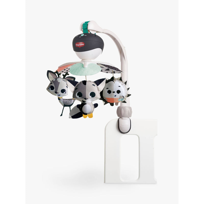 O celular leve, com belo design em preto e branco, reproduz 30 minutos de música ininterrupta (5 músicas diferentes), criando um ambiente relaxante para o seu bebê. Os animais da floresta encantados deste berço móvel estimulam visualmente o bebê e dão uma sensação de familiaridade, seja em casa ou em movimento.