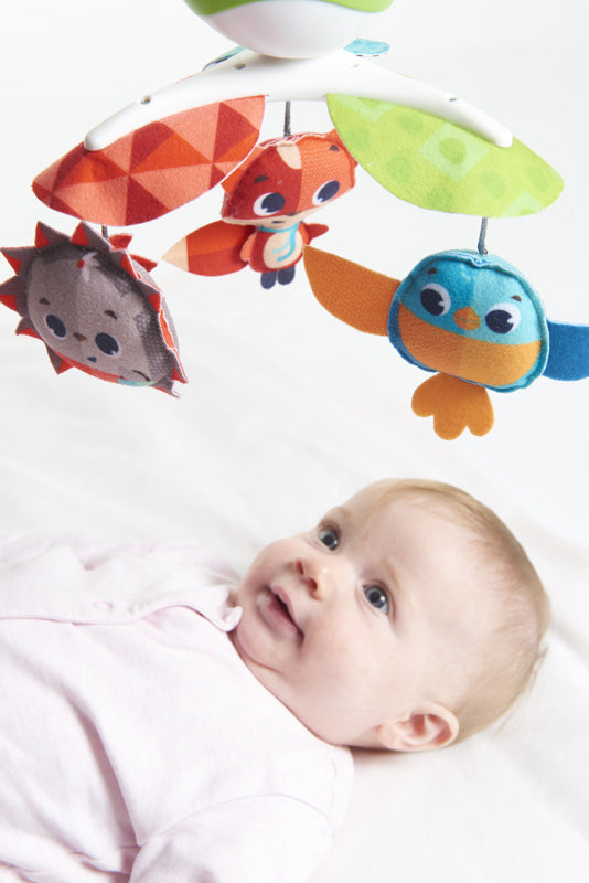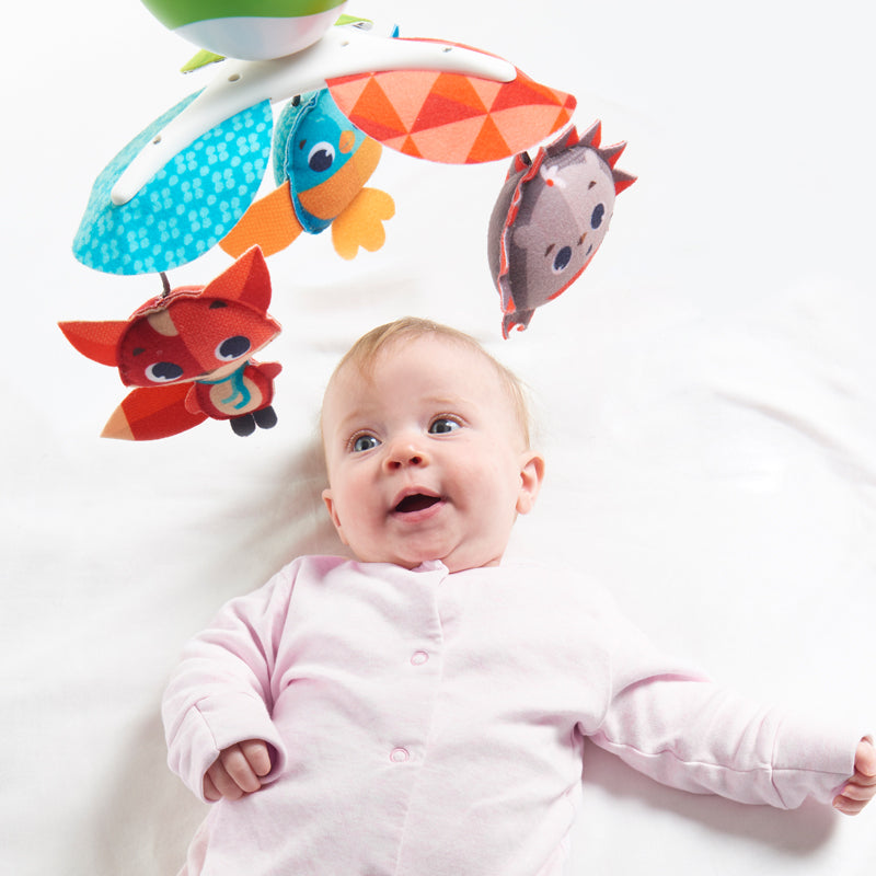 Brinquedo adorável que dá ao bebê uma sensação de familiaridade enquanto viaja. Suas músicas suaves e câmera lenta ajudam a relaxar o bebê e incentivar o EQ.