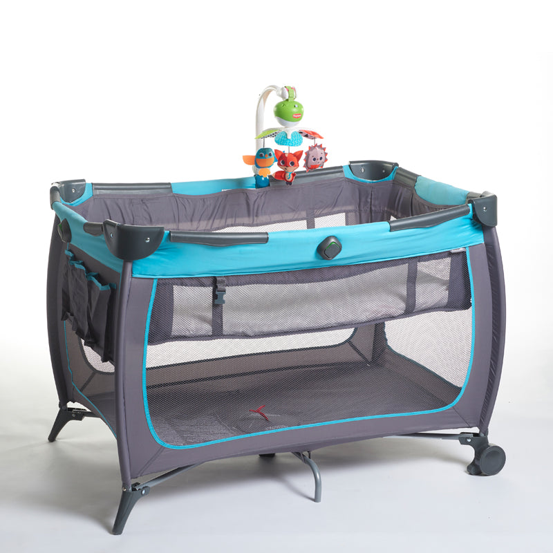Conector designado para cada produto de equipamento para bebês: playgrounds, berços de viagem, porta-bebês, carrinhos e berços.