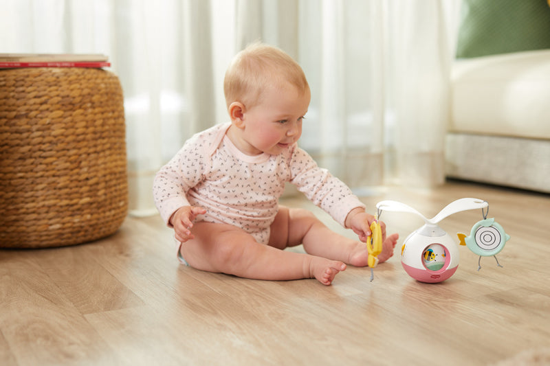 O brinquedo inovador possui braços rotativos de 360 ° e uma variedade de recursos divertidos, como um contador de histórias divertido e sons ativados por bebês, tudo para estimular o desenvolvimento. O brinquedo de cabeça para baixo incentiva o seu filho a praticar o tempo da barriga e - virado para trás - é facilmente acoplado ao carrinho como um móvel em movimento.