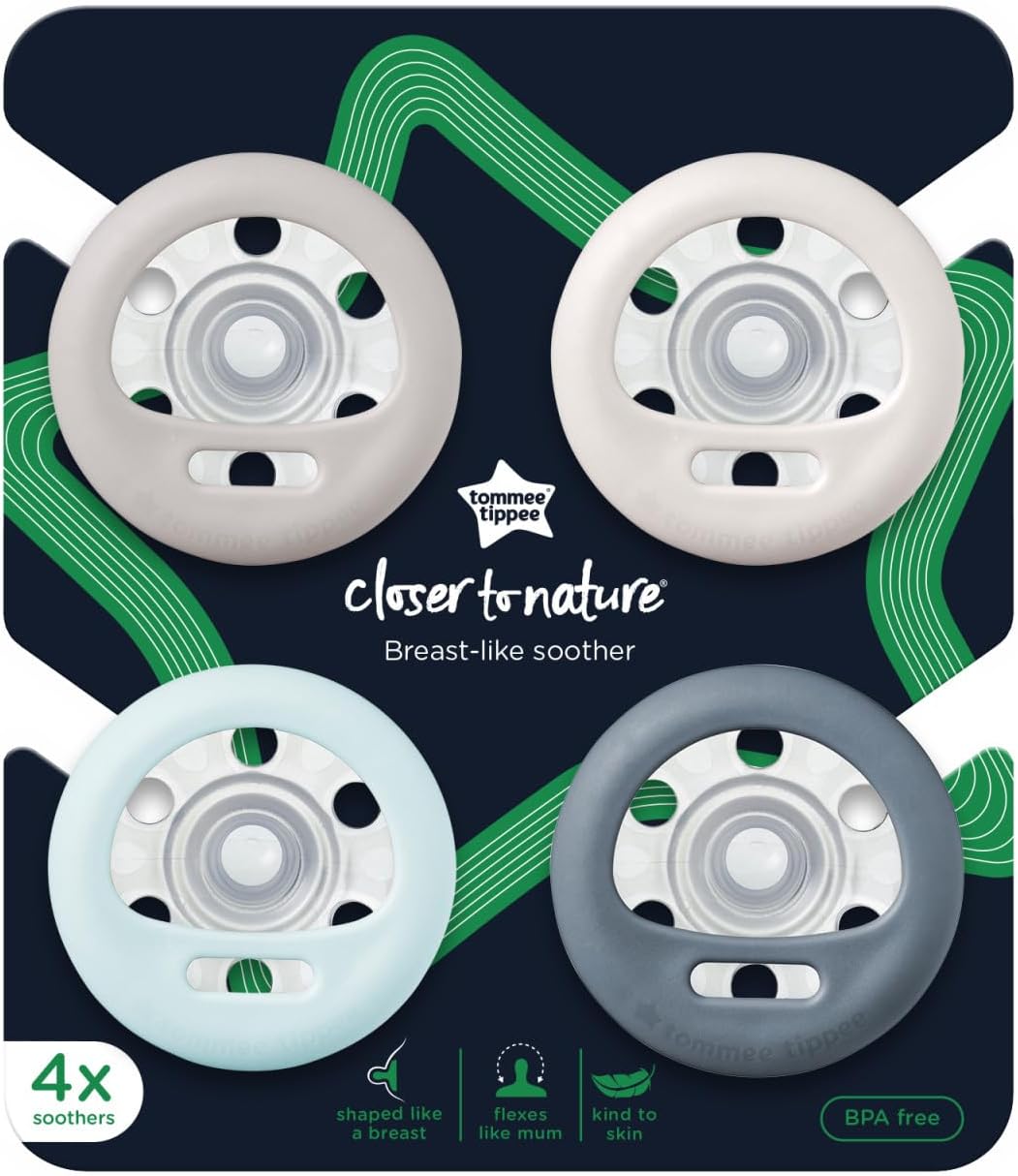 Tommee Tippee Breast-Like Dummies, pacote de 0 a 6 meses com 4 Dummiess com baglet semelhante a peito, design simétrico e sem BPA
