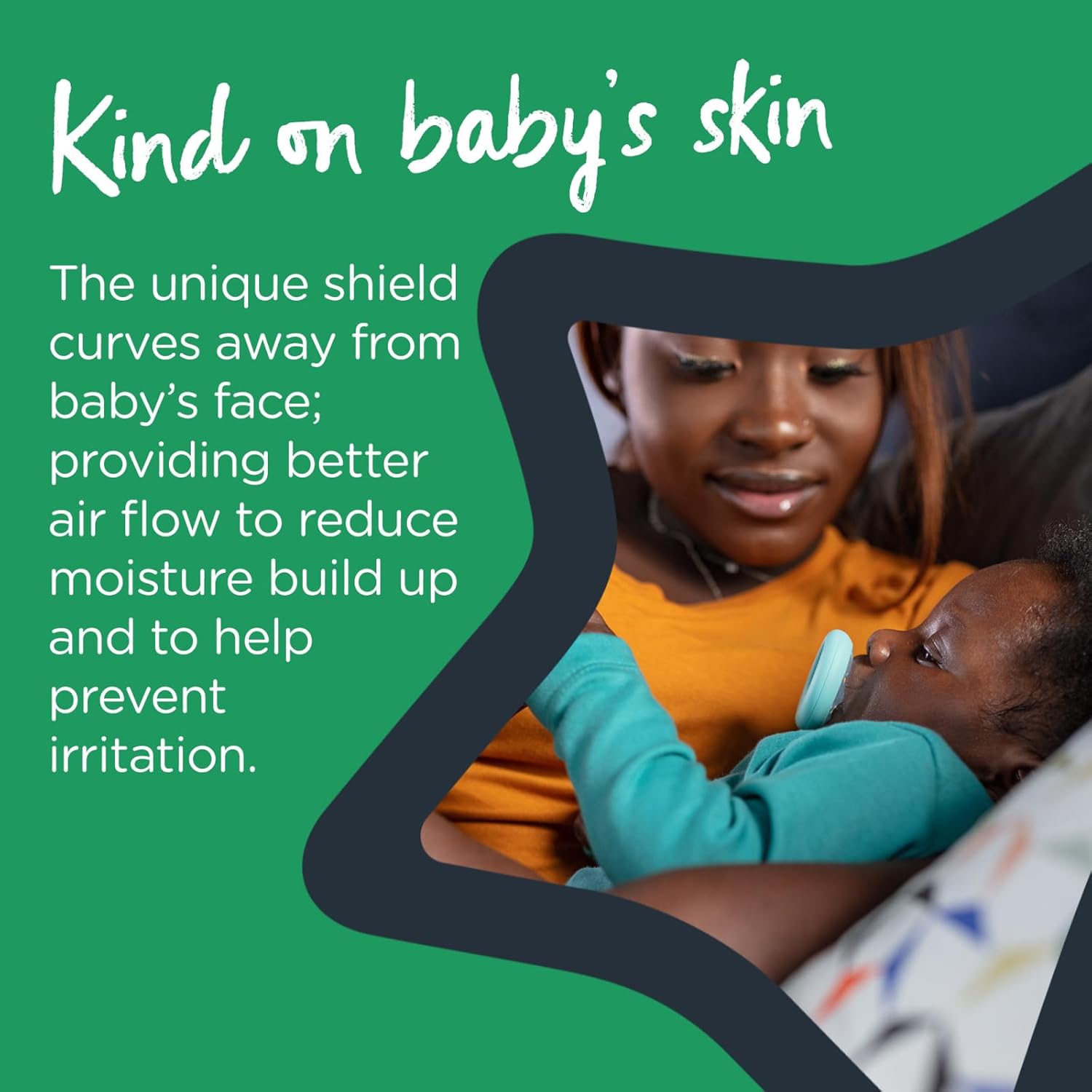 - Gentil para a pele do bebê: este protetor de chupeta exclusivo se curva para longe do rosto do bebê e oferece ventilação superior para melhor fluxo de ar, reduzindo o acúmulo de umidade e ajudando a prevenir irritações.