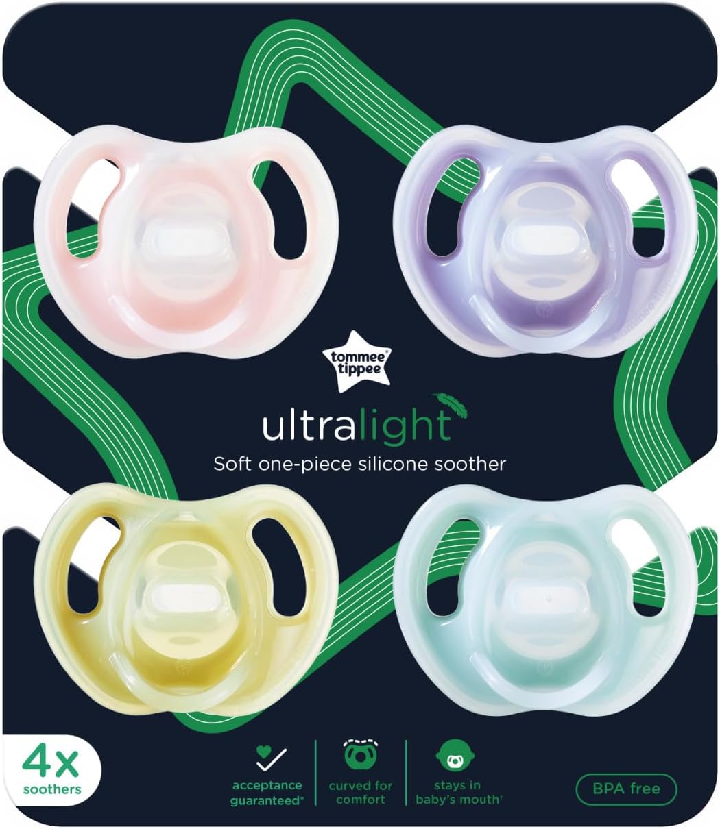 Tommee Tippee Chupetas ultraleves, 6-18 meses, 4 pacotes de silicone de uma peça, chupetas de polipropileno sem BPA