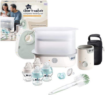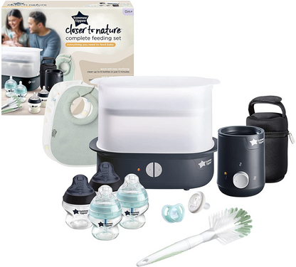 Tommee Tippee Conjunto de alimentação completo Closer to Nature, esterilizador elétrico a vapor com bolsa de mamadeira isolada, mamadeiras para recém-nascidos e aquecedor de mamadeiras Easiwarm, branco