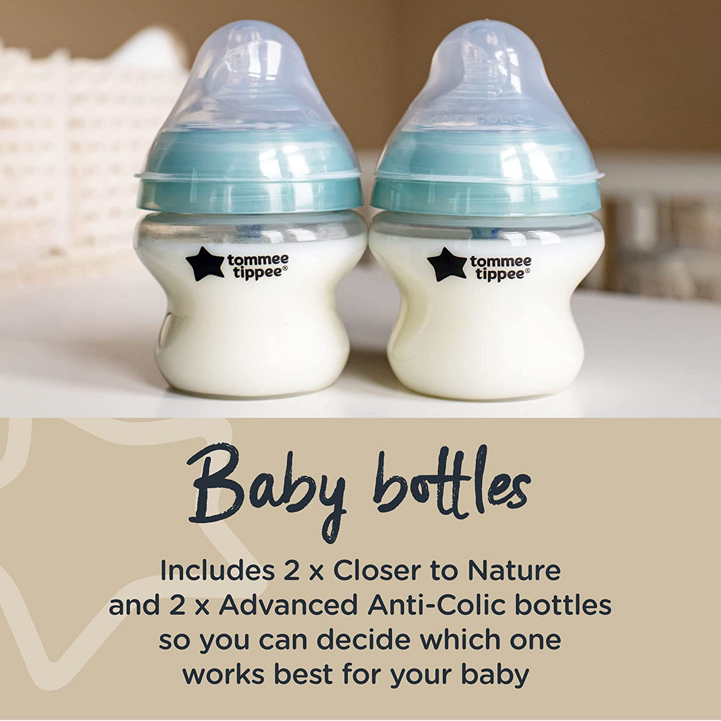 Mamadeiras Closer to Nature: O Kit Completo vem com 2 mamadeiras CTN e 2 mamadeiras Anti-Cólicas CTN, todas de 150ml com bicos de fluxo lento, tornando-o essencial para pais com recém-nascidos