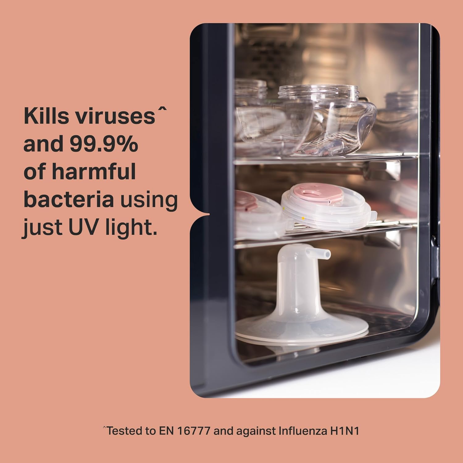 - Modo de armazenamento: O esterilizador UV Tommee Tippee mantém o conteúdo estéril no modo de armazenamento.