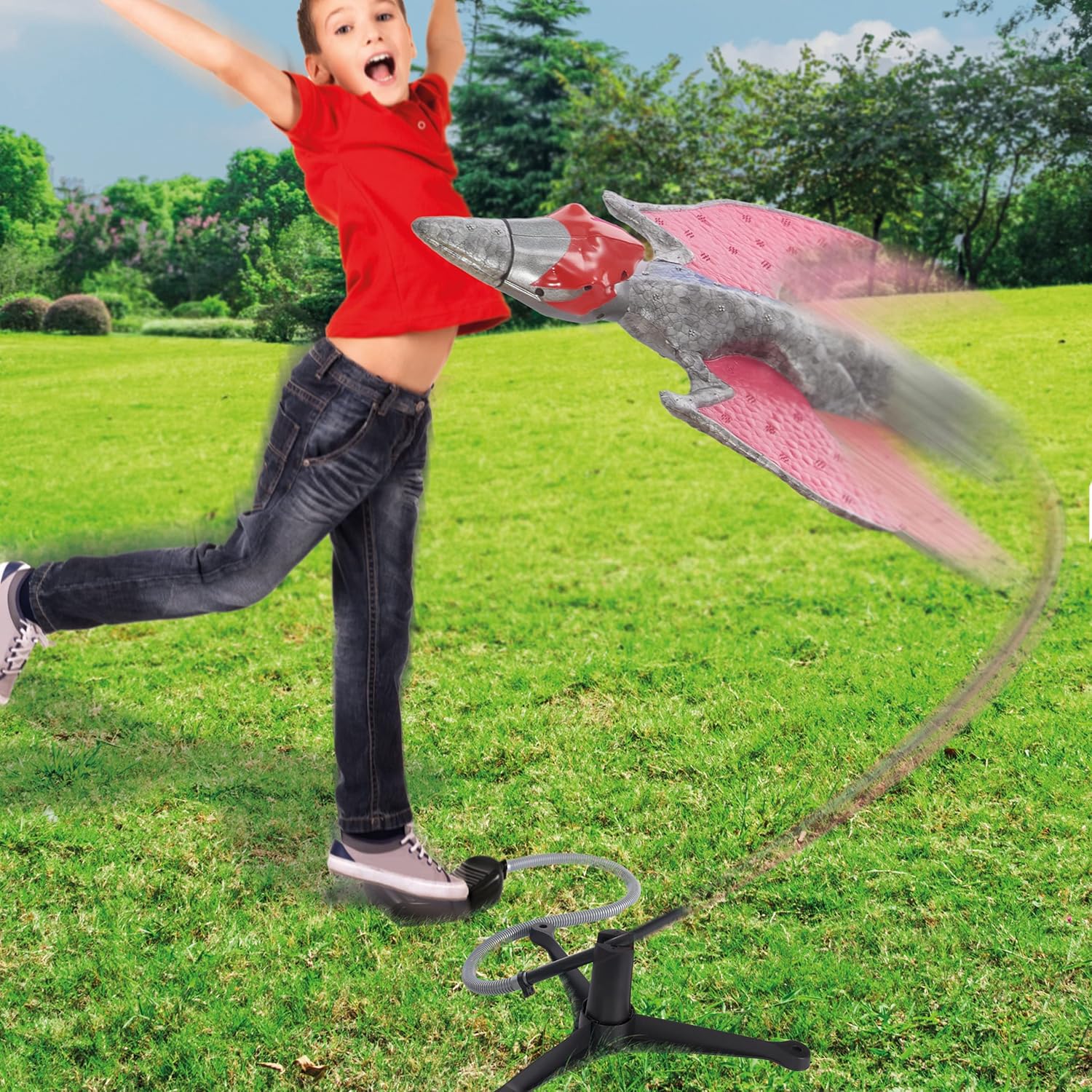 - FOGUETES BÔNUS - 2 foguetes adicionais que voam até 60 metros estão incluídos. Um presente de brinquedo de jardim perfeito para diversão ao ar livre. Divirta-se com seus amigos e familiares para ver quem consegue enviar seu dinossauro ou foguete mais longe.