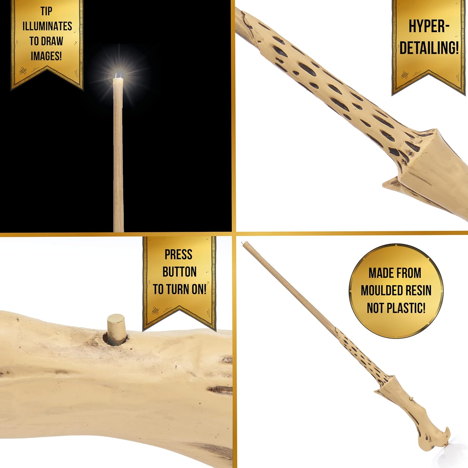 UAU! COISAS - Varinha Lumos de Draco Malfoy com 14 luzes, varinhas oficiais de Harry Potter e presentes do Mundo Mágico, brinquedos e itens colecionáveis, acessórios para fantasias e jogos de interpretação de papéis para fãs, meninas e meninos
