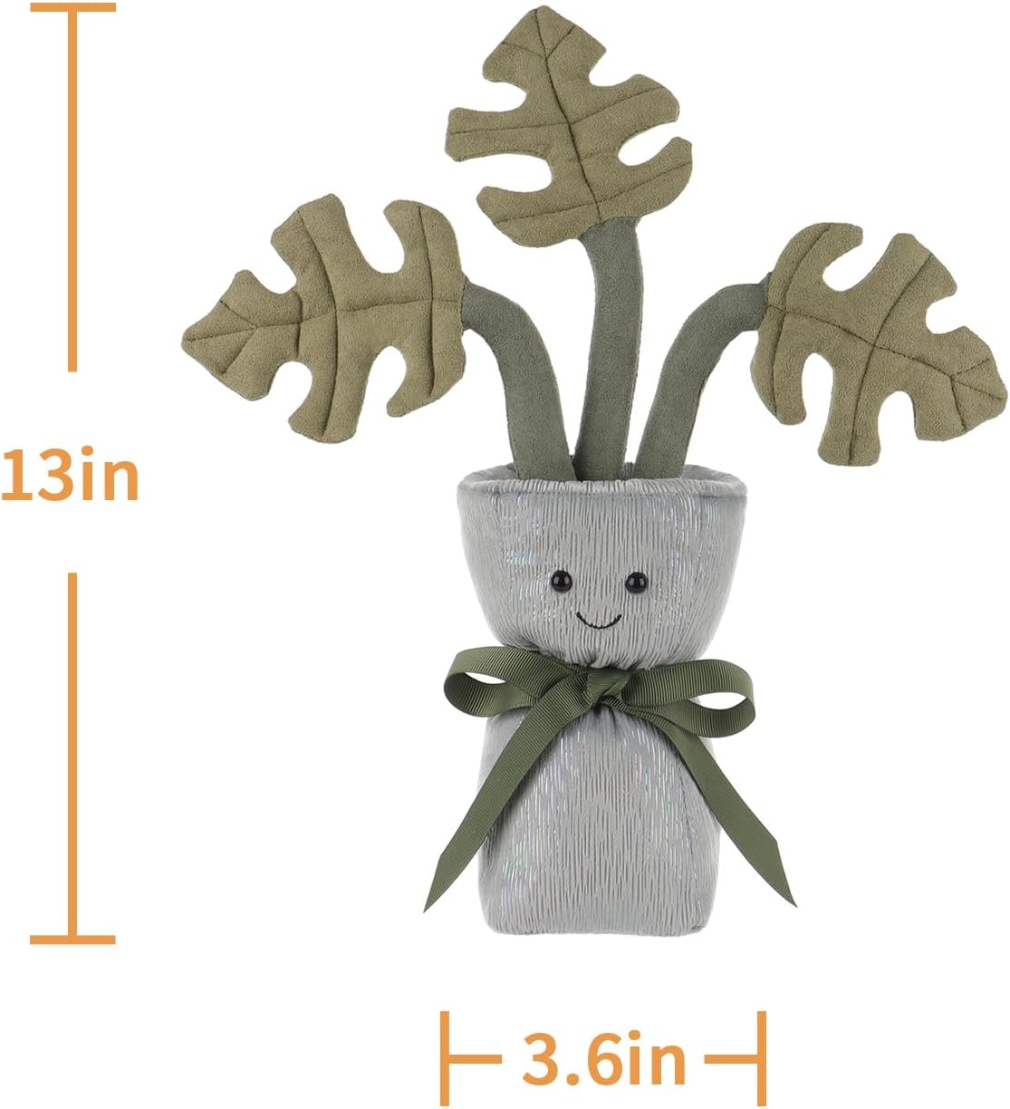 - Tamanho perfeito: o adorável vaso de peluche Monstera mede 33 cm, o que é um tamanho perfeito para as crianças abraçarem e fazerem companhia, além de ser muito prático para levar para acampamentos e passeios.